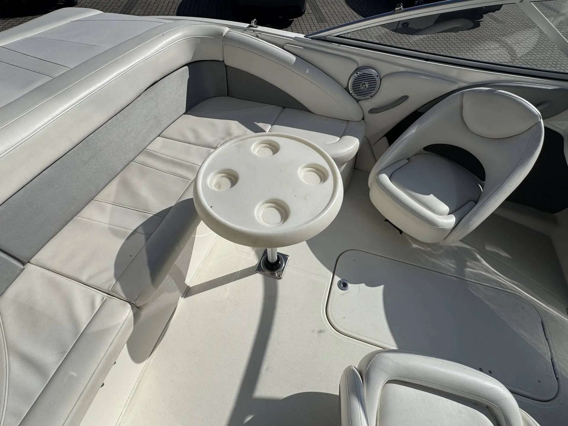 Indretningen er gennemtænkt med en rummelig cockpit og god siddeplads til hele familien. I stævnen (bow) er der hyggelige siddepladser, hvor man kan nyde solen, og agter finder du en indbydende lounge, perfekt til afslapning. Der er desuden fine opbevaringsrum til udstyr, tasker og vandlegetøj.