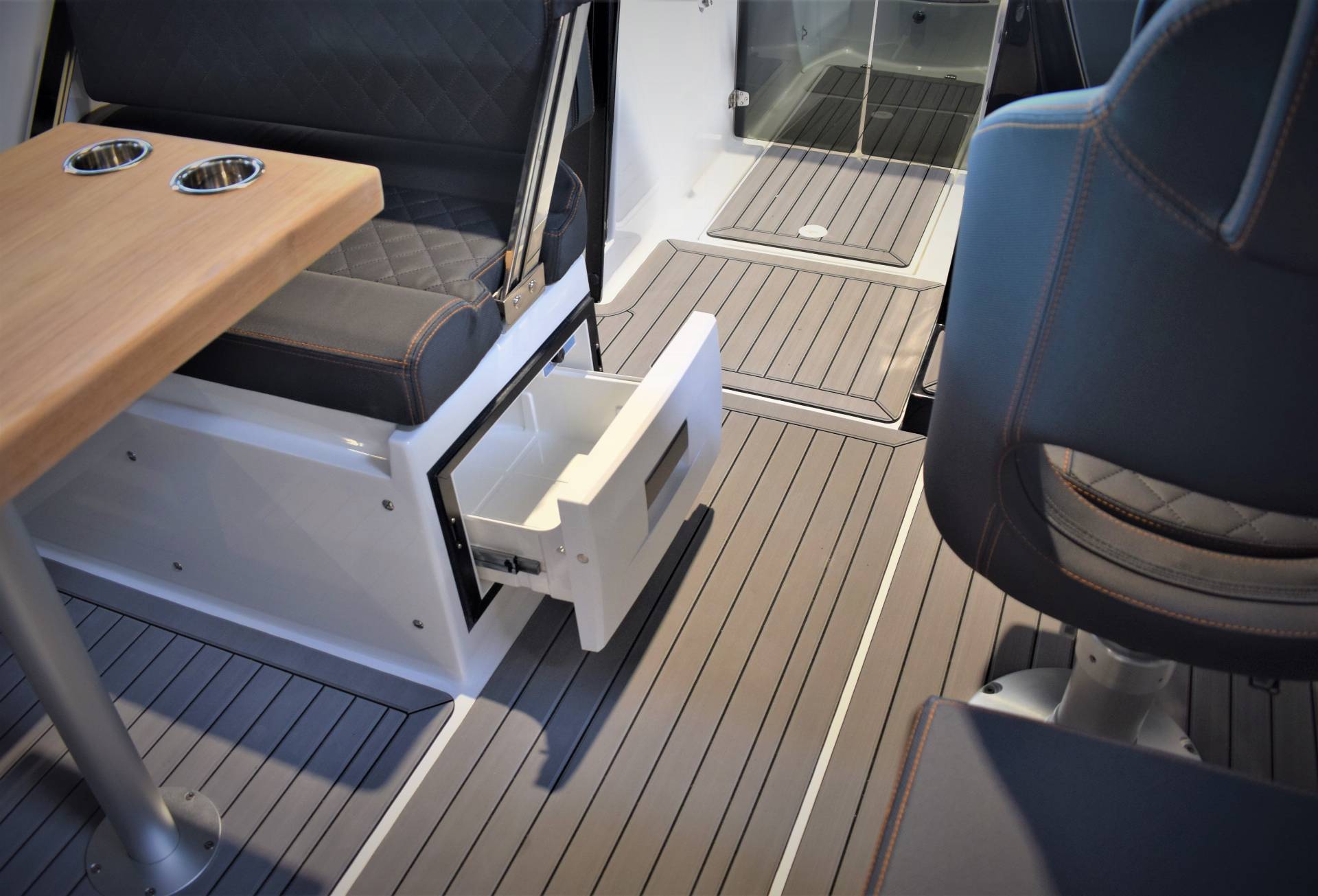 Iblandt udstyrslisten finder du komplet polstring i båden, skumbelagt gulv, camper -og havne kaleche, udvidede badeplatforme med badestige, solsenge i cockpit og bov, Garmin 9 navigation med ekkolod, og meget meget mere!