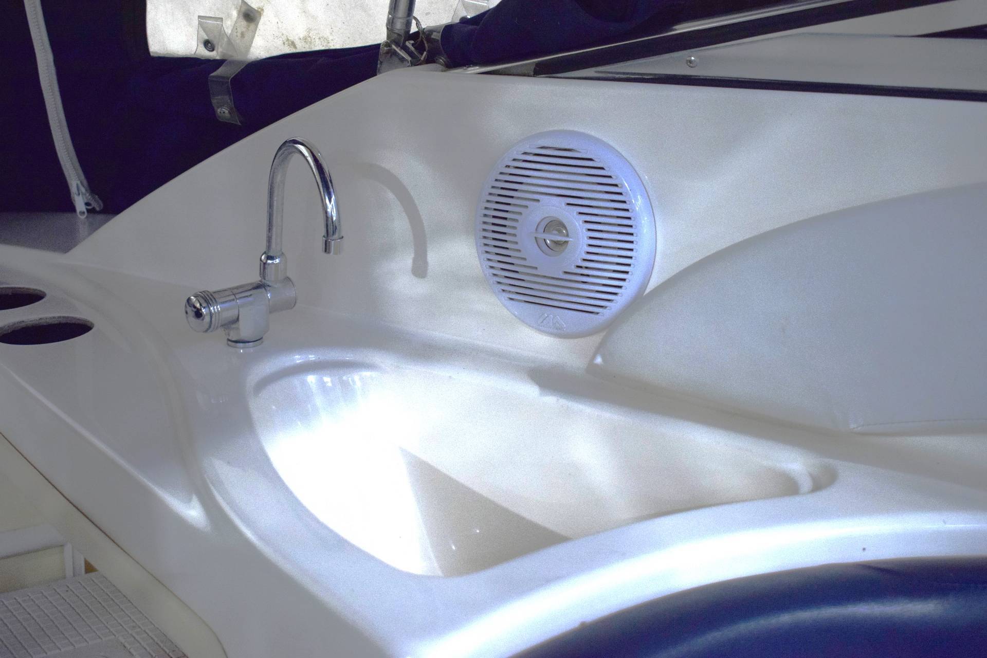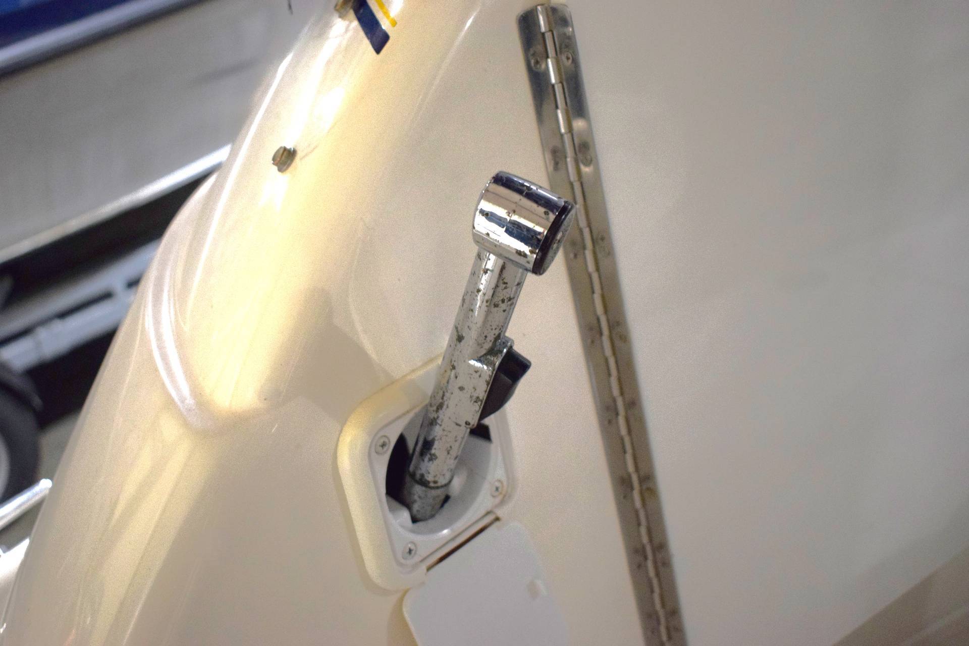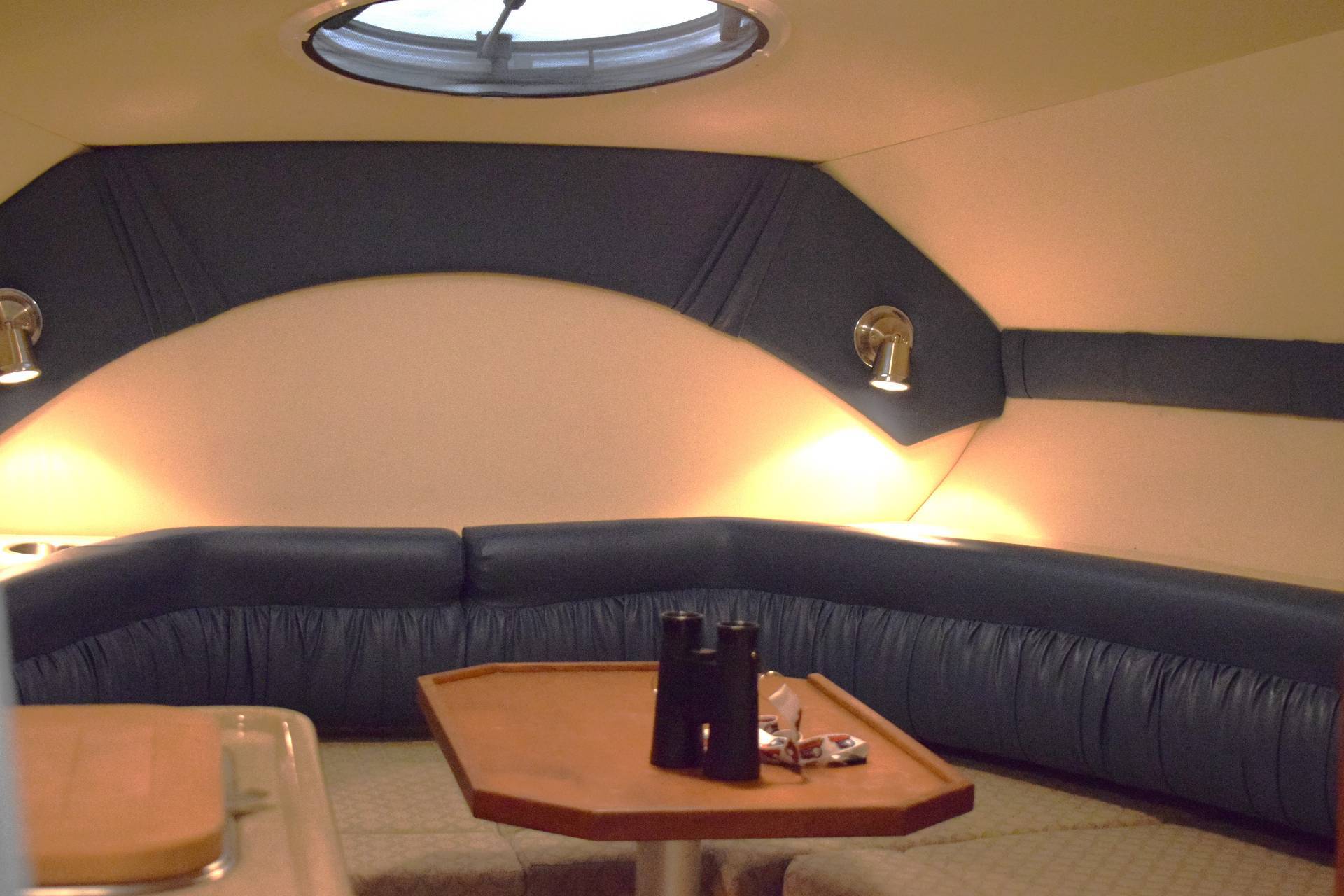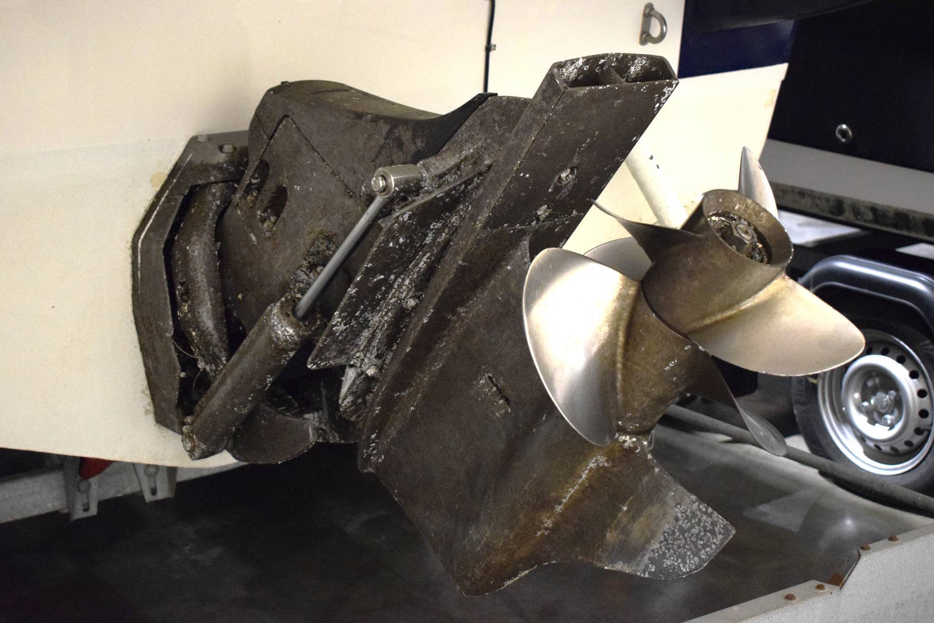 Båden er udstyret med en Volvo Penta 5.0 GXi motor med 275 HK, hvilket giver en effektiv og kraftfuld sejlads – både når du cruiser afslappet afsted eller ønsker lidt mere fart over feltet. Det planende skrog giver stabilitet og gør den let at manøvrere, også for mindre erfarne sejlere.