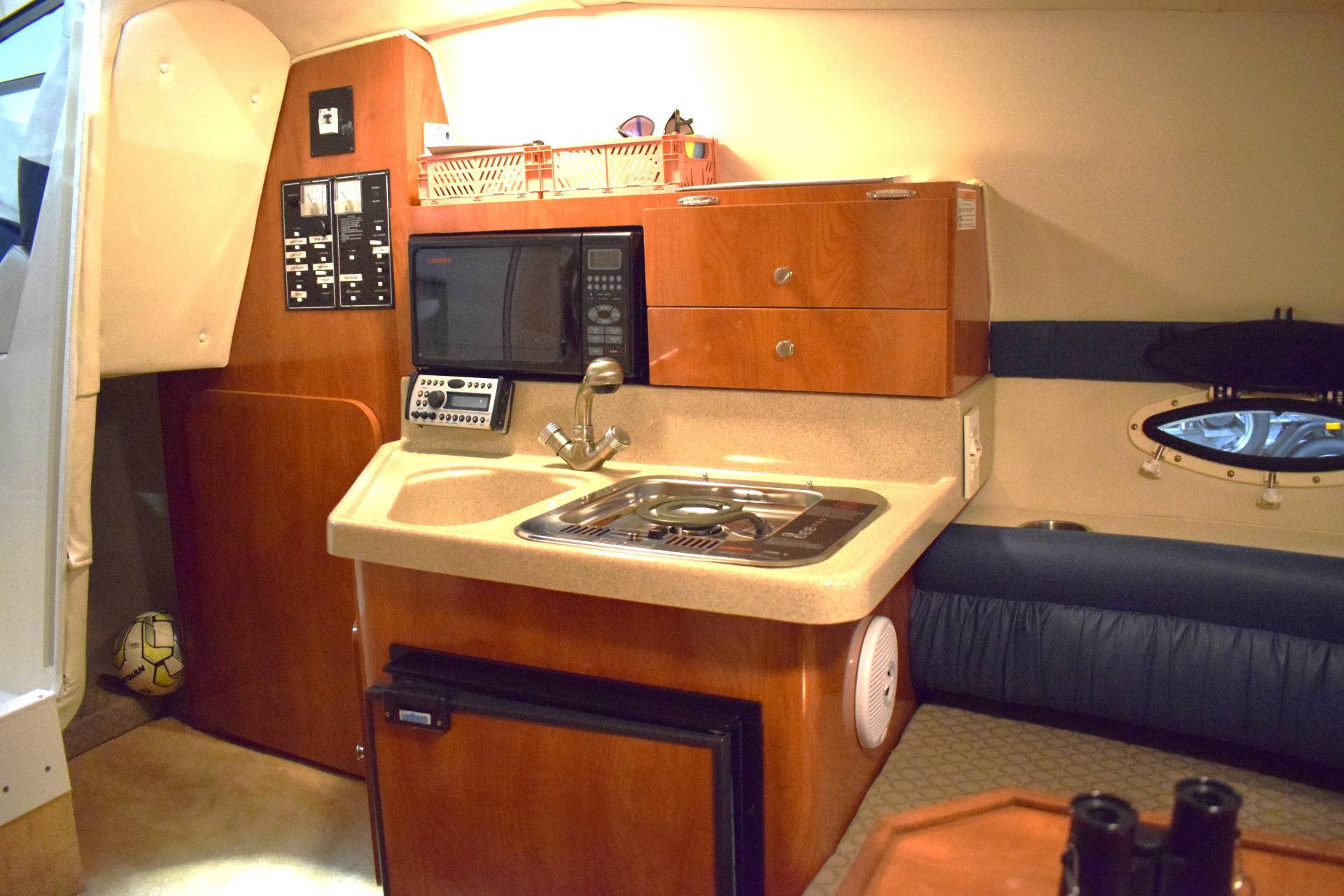 Glastron 259 GS er ikke bare en båd – det er dit flydende sommerhus. Med sine rummelige indendørs faciliteter er den ideel til weekendture og mini-ferier på vandet. Den komfortable kabine tilbyder: