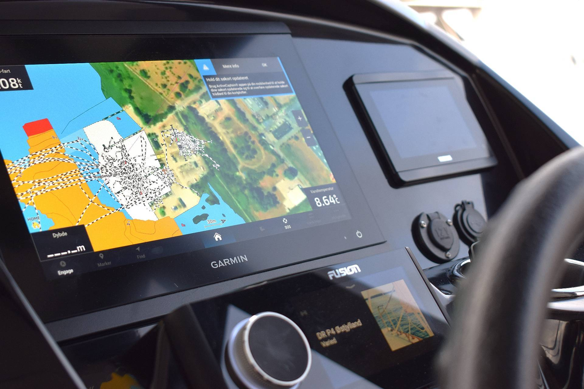 Fusion Musik anlæg med højtalere i salon og agtercockpit