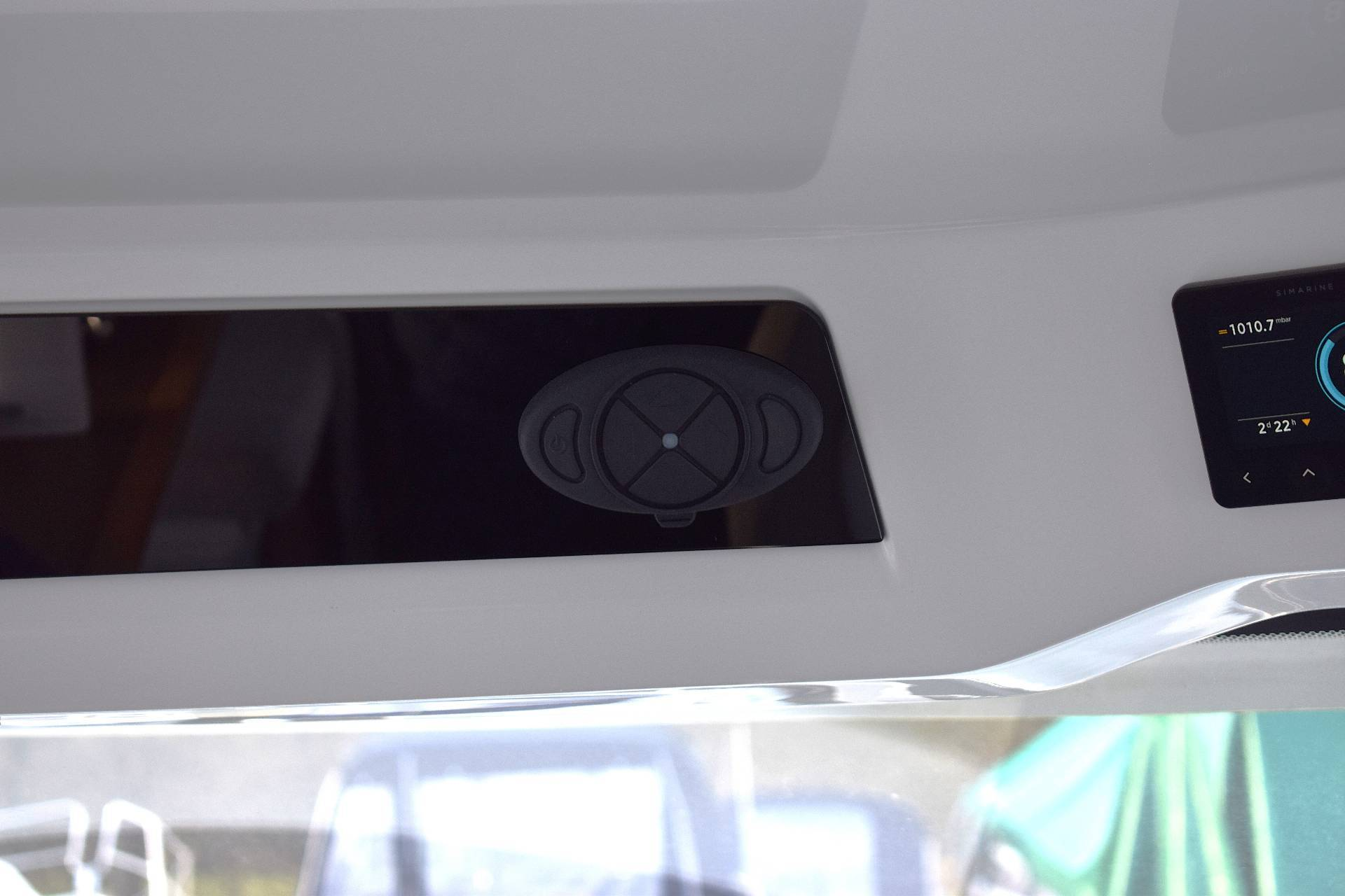 Udstyrsniveauet er i en liga for sig. Den store Garmin 12 kortplotter fungerer som hjertet i bådens navigationssystem, suppleret af ekstra transducer for optimal information om bundforholdene, Garmin autopilot og Garmin Fantom 18 radar, der sammen løfter sikkerhedsniveauet markant. AIS 800, kamera over agtercockpittet og et komplet NMEA 2000 setup giver et overblik og en brugervenlighed, som kun få både i klassen kan matche. Det fjernbetjente bov- og ankerspil gør manøvreringen både elegant og ubesværet, og Si-Marine Wessel-overvågning sikrer, at du altid kan holde øje med båden – også på afstand.