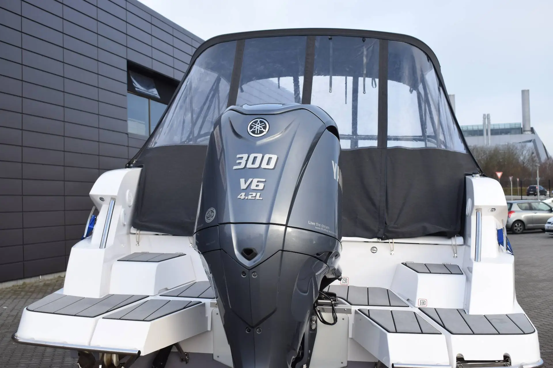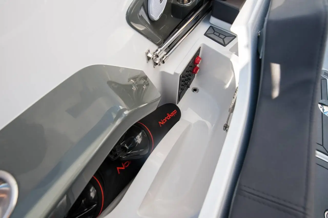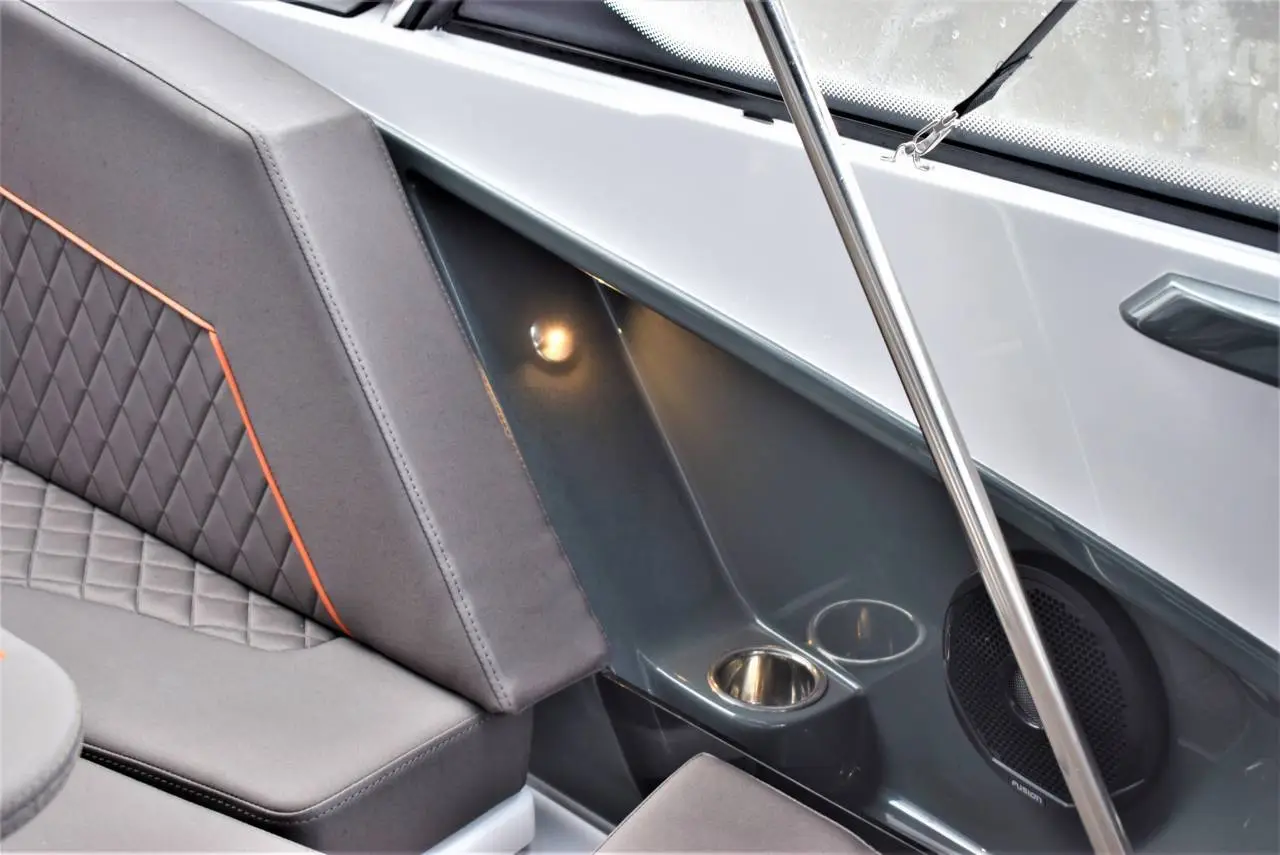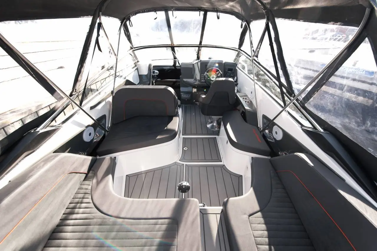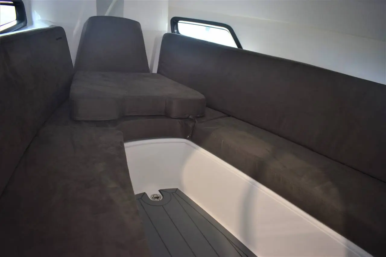 Her ertale om en båd, der ikke bare har rigtig meget at byde på - den har ALT AT BYDE PÅ! Allerede når vi snakker om powertil at få den frem og ud af vandet – du får hele 300 hk på hækken - den attraktive og velkendte grå Yamaha maskine. Sammen med et lækkert og funktionelt skrog,der skærer præcist i vandet, har denne båd stort fartpotentiale. Der findesikke mange både i dette segment, der har den samme fleksibilitet, når detkommer til at vælge motor og kræfter. Båden er tillige Keramisk coated, hvilket giver en langvarig super blank og ikke mindst modstandsdygtig overflade.