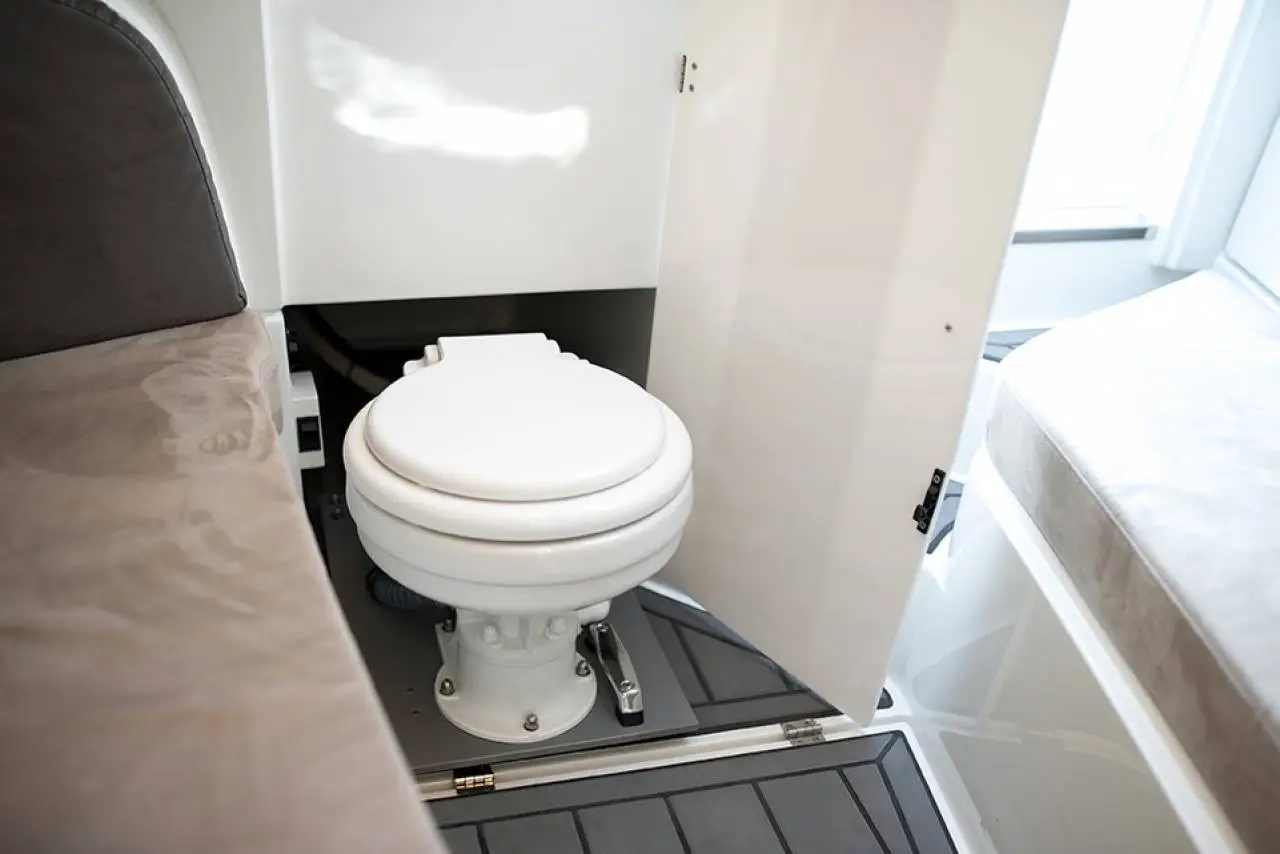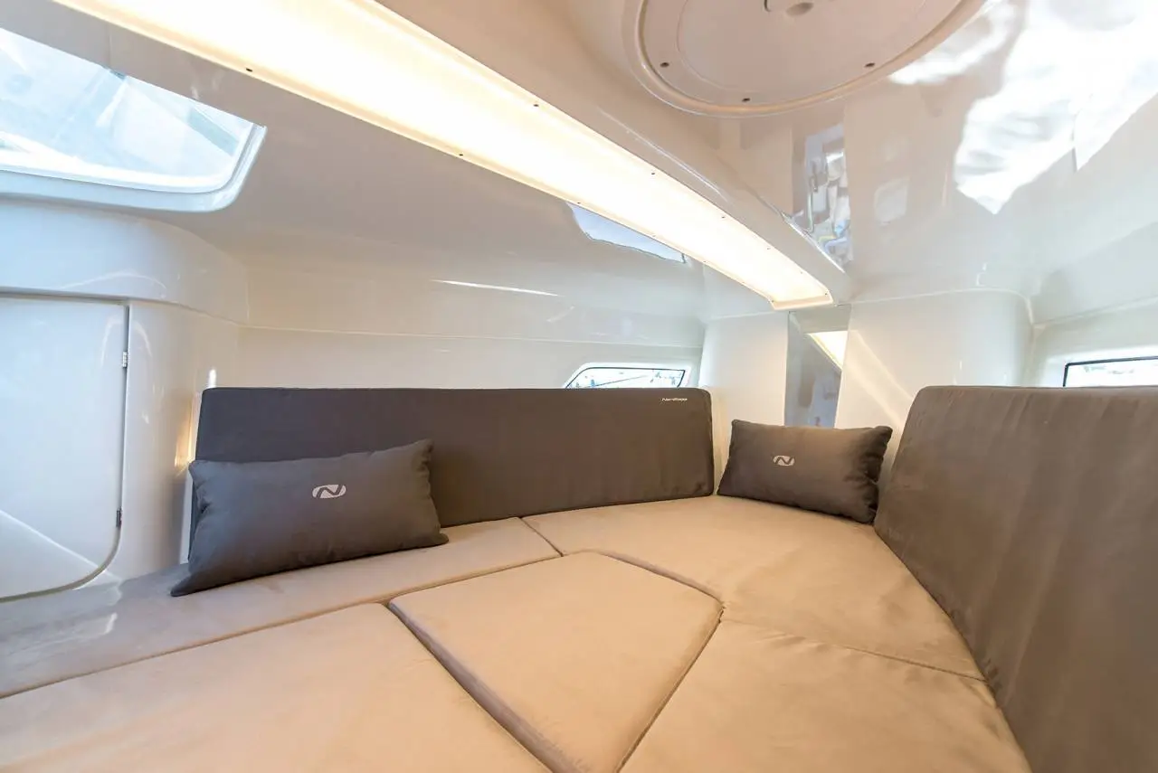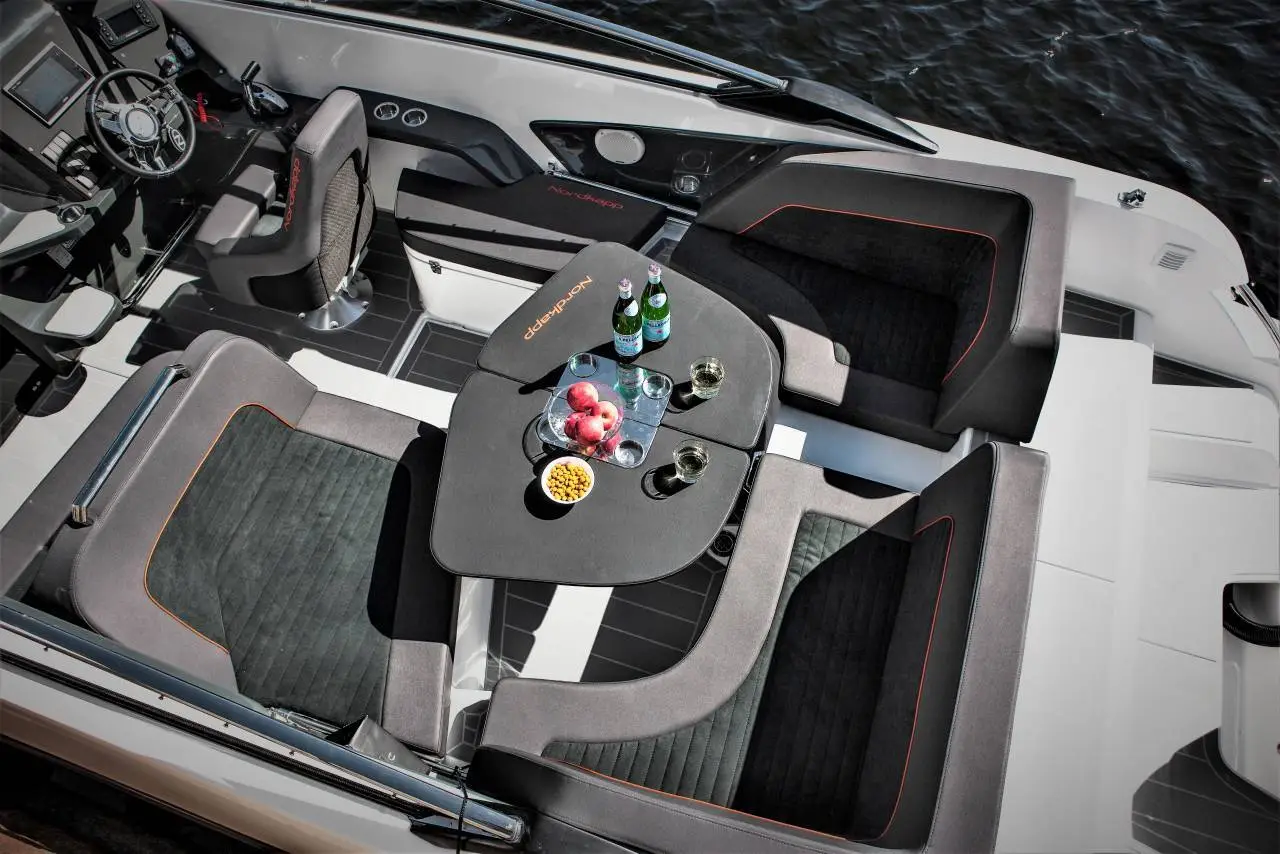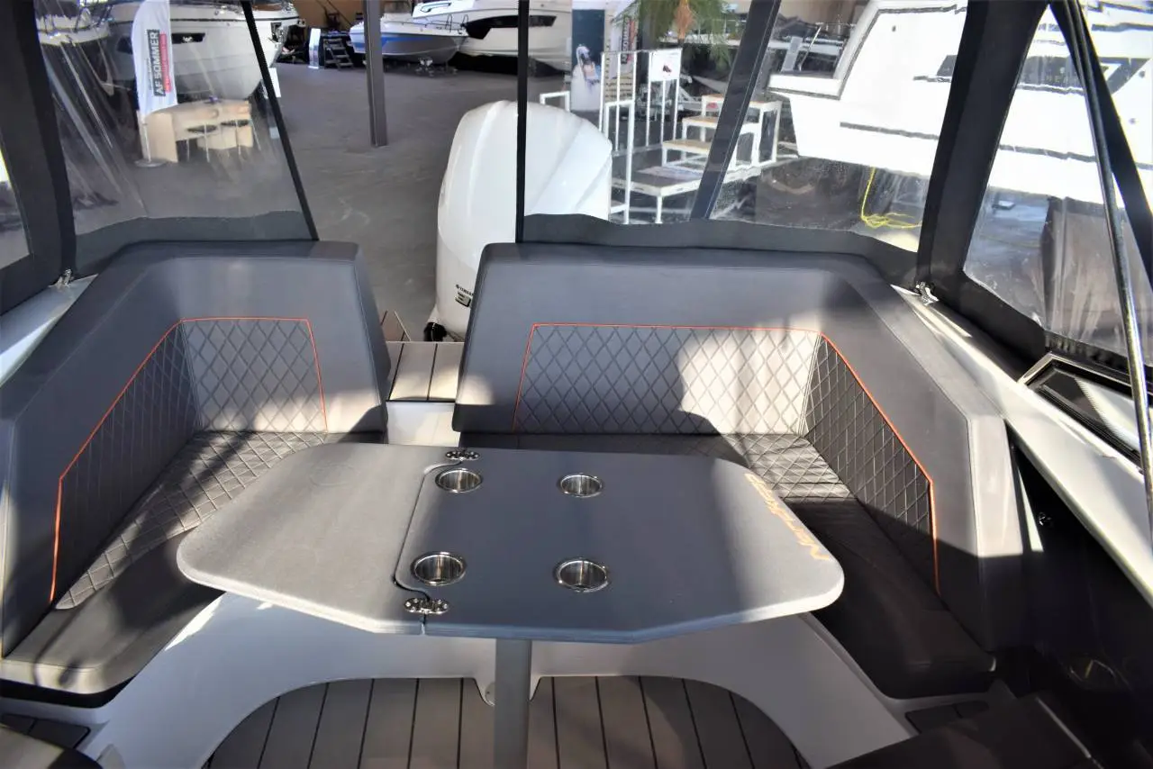 Cockpitteter rummelig og designet til at huse sociale sammenkomster, til hygge, fart ogspænding, da båden her er godkendt til at have 8 personer om bord.