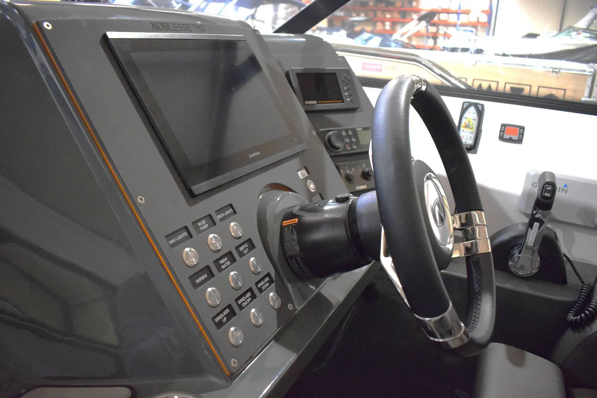 Instrumentbordet er nøje tilpasset kaptajnens plads, hvorframan har et rigtig godt overblik over motorinstrumenter og GPS plotter, hvilketgiver sejloplevelsen en ekstra tak opad. Heleinstrumentbordet er opbygget, ud fra de muligheder de nye teknologier har at tilbydeos i dag.