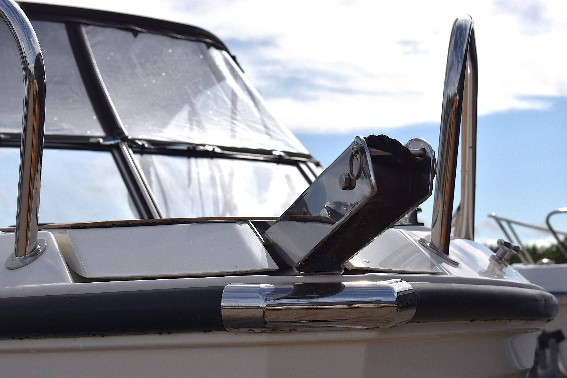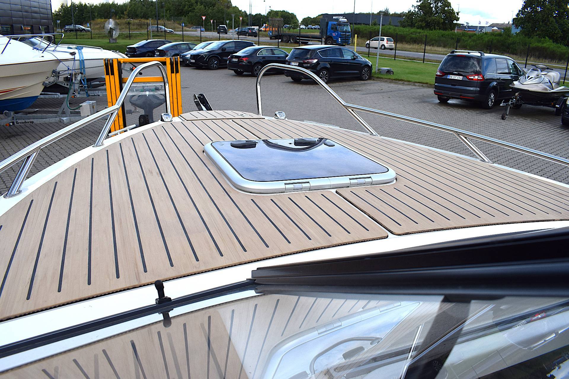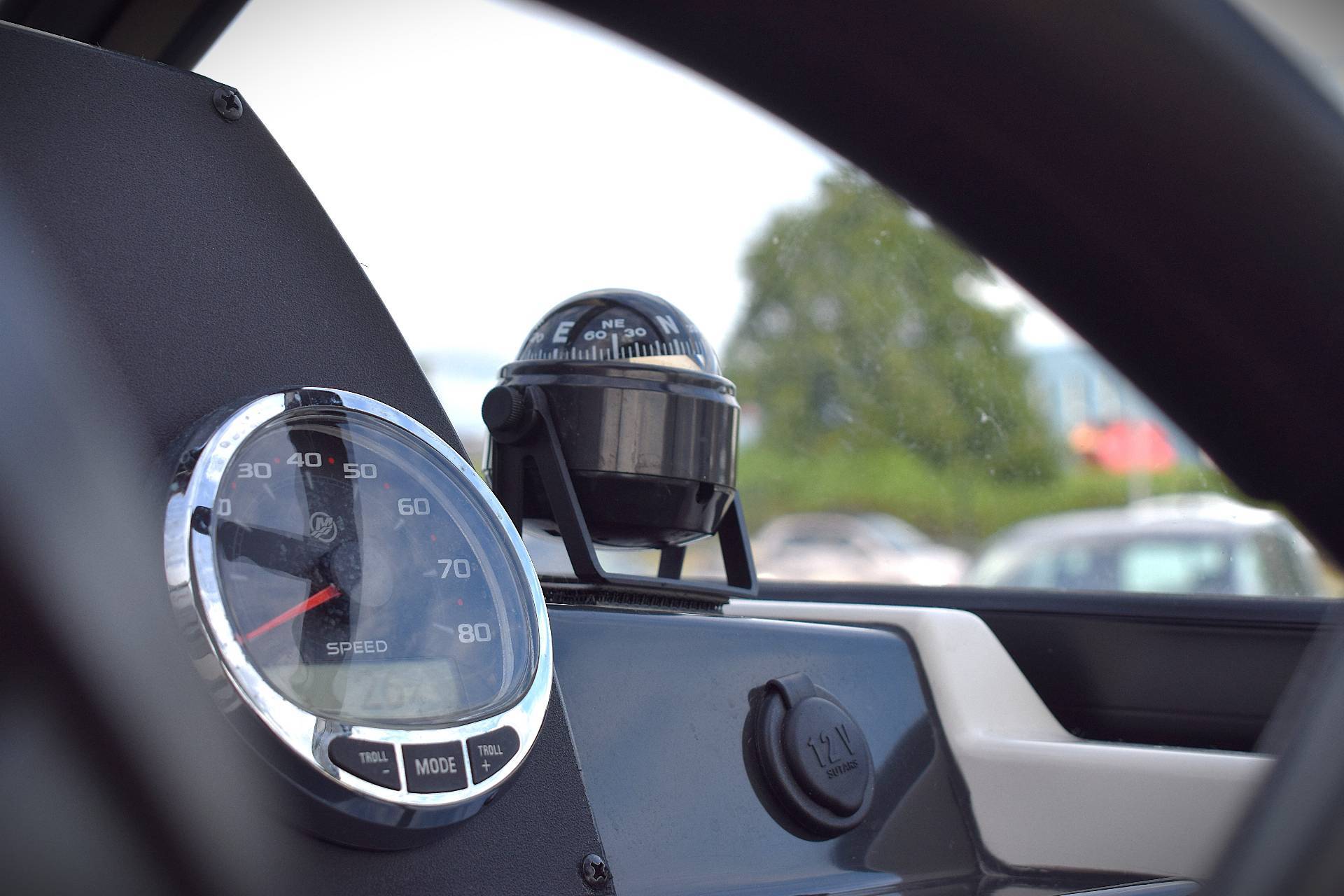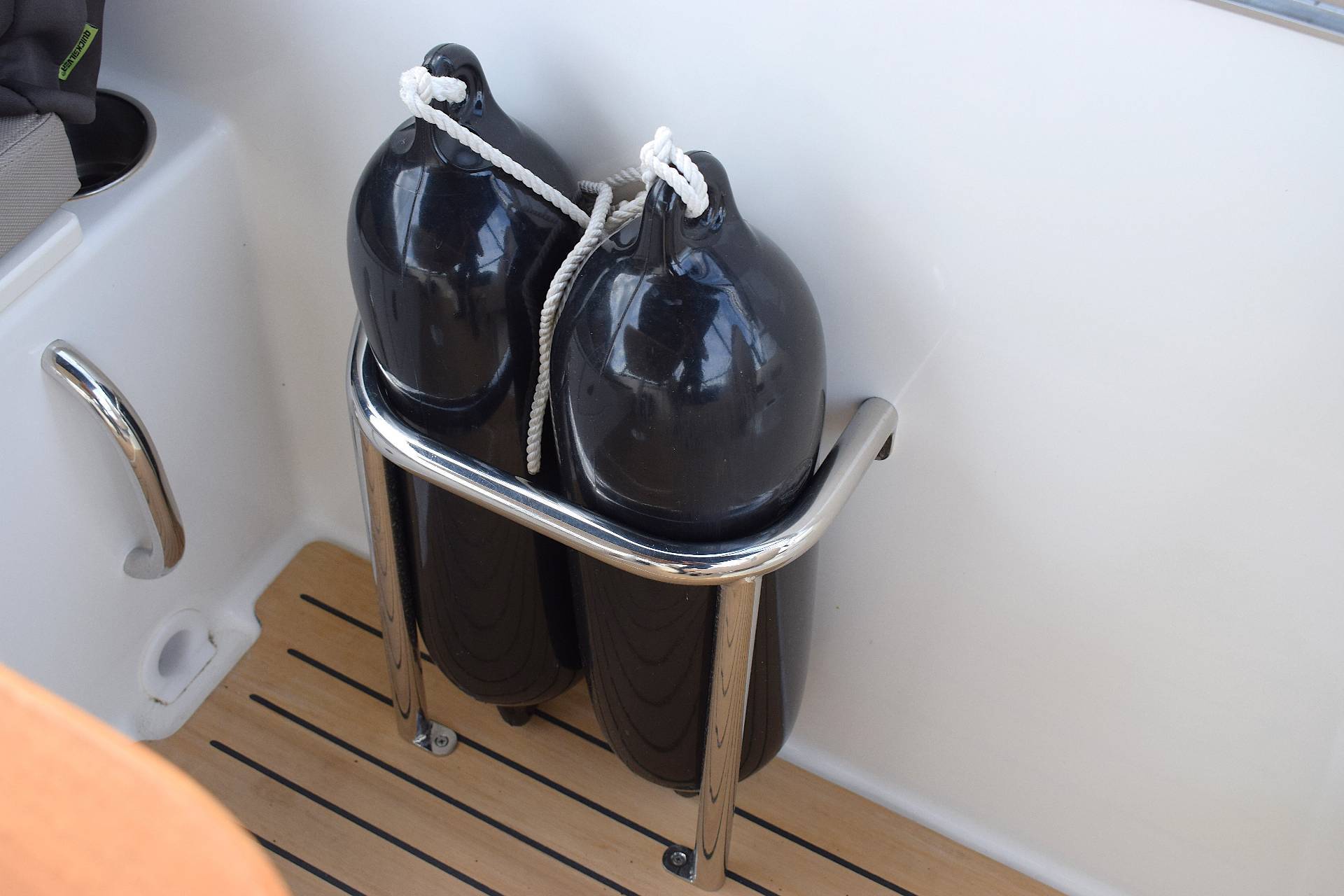 Cockpittet er indrettet med fokus på hygge og funktionalitet. Her finder du kopholdere, cockpitbord og en smart Garmin 7 kortplotter, der sammen med kompasset gør navigationen både nem og sikker. Med fenderholdere og fendere inkluderet er båden klar til at lægge til, hvor end du måtte ønske. Det hele står knivskarpt og er passet med stor omhu.