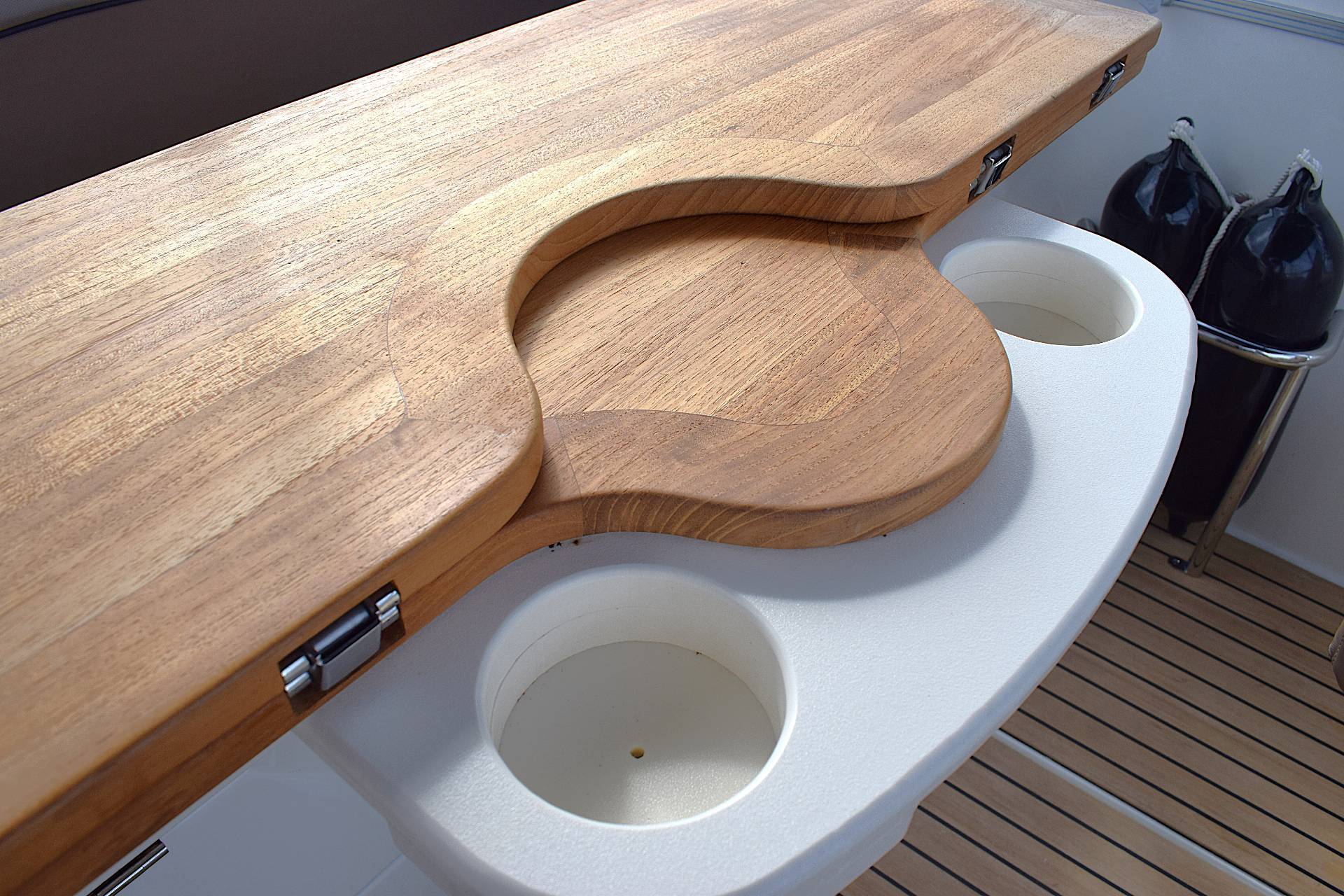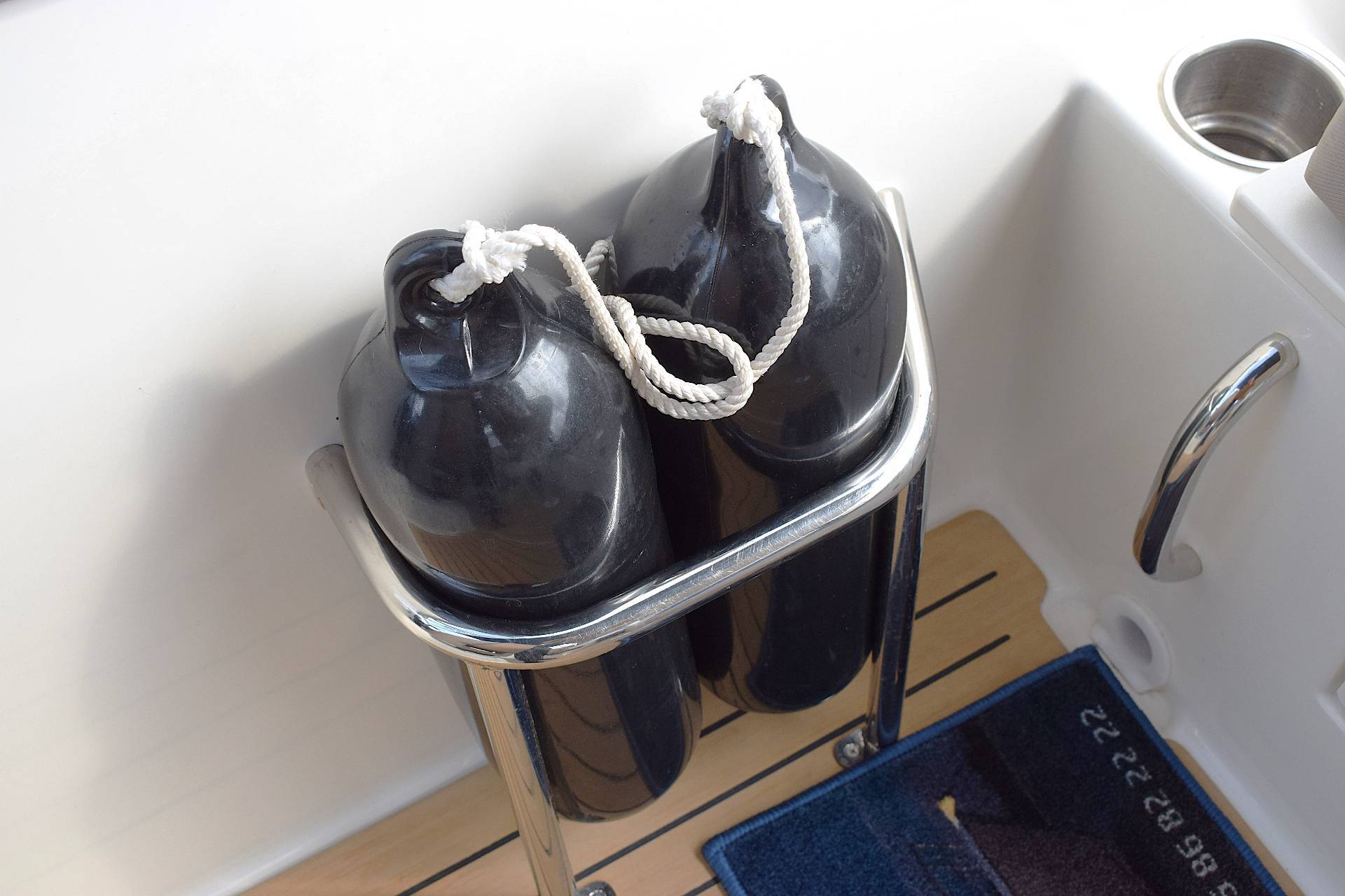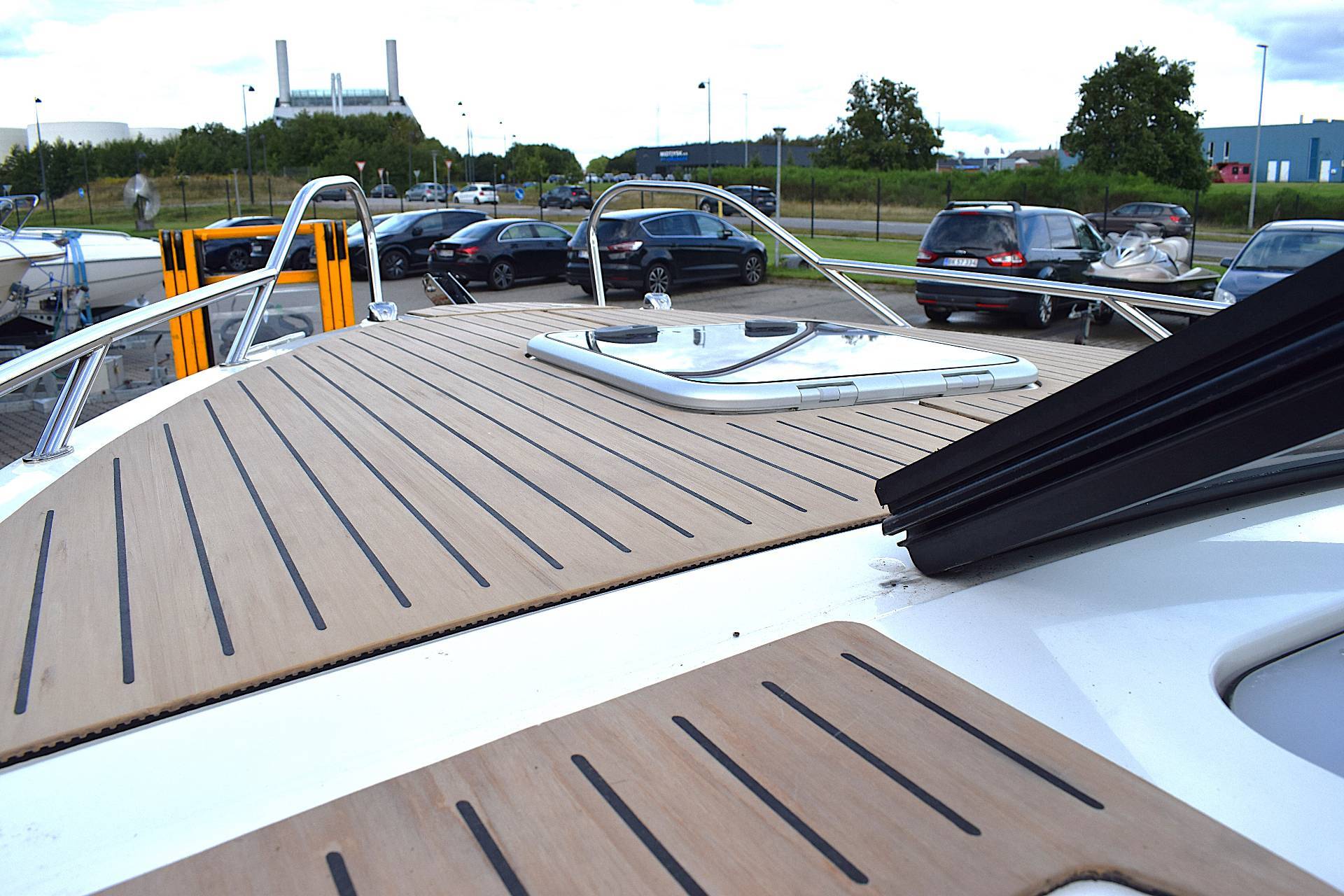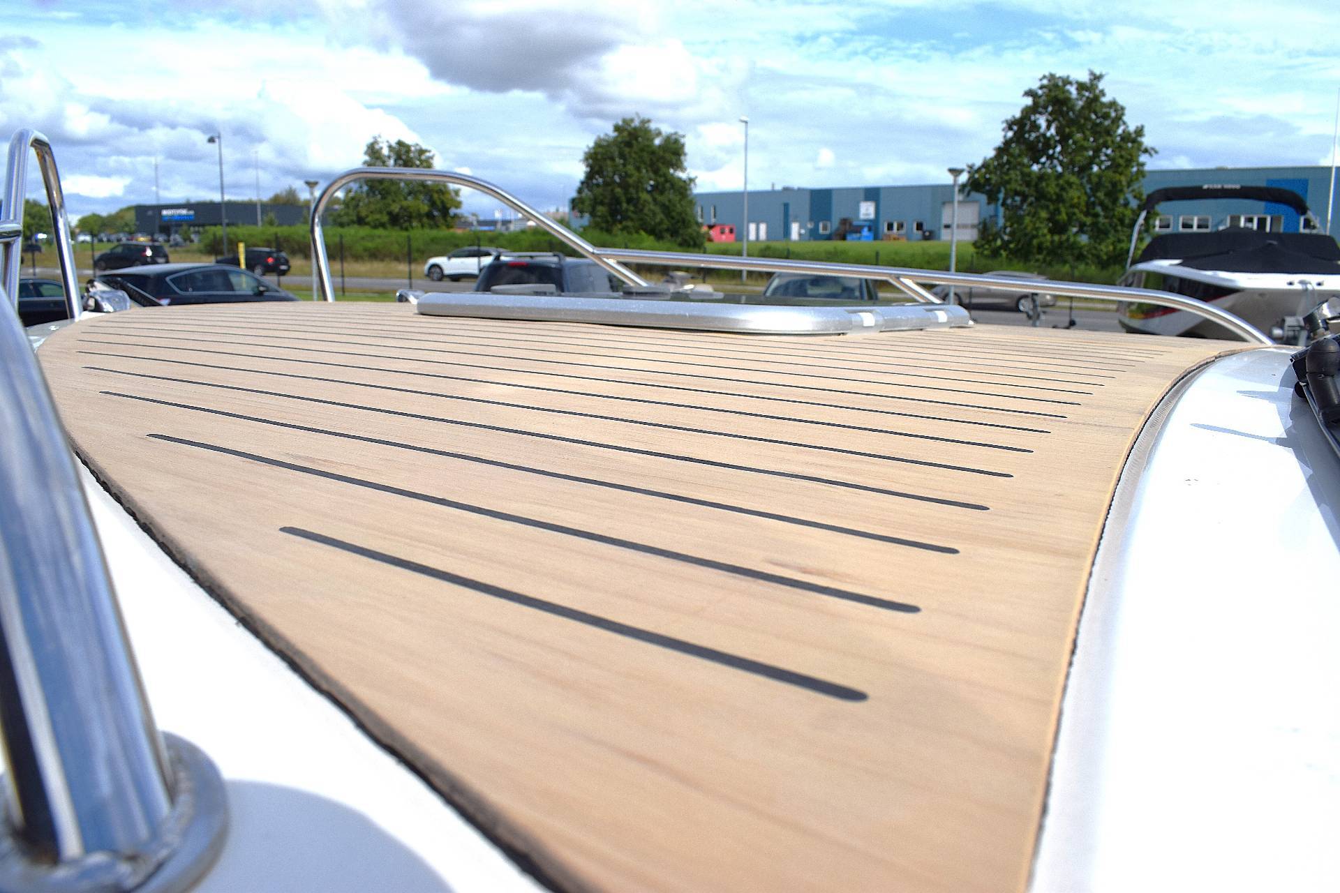 Cockpittet er indrettet med fokus på hygge og funktionalitet. Her finder du kopholdere, cockpitbord og en smart Garmin 7 kortplotter, der sammen med kompasset gør navigationen både nem og sikker. Med fenderholdere og fendere inkluderet er båden klar til at lægge til, hvor end du måtte ønske. Det hele står knivskarpt og er passet med stor omhu.