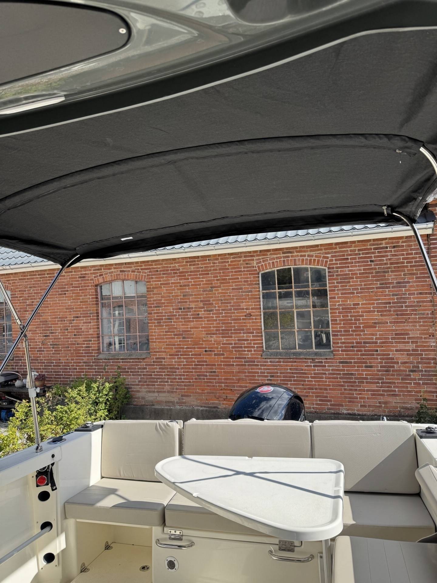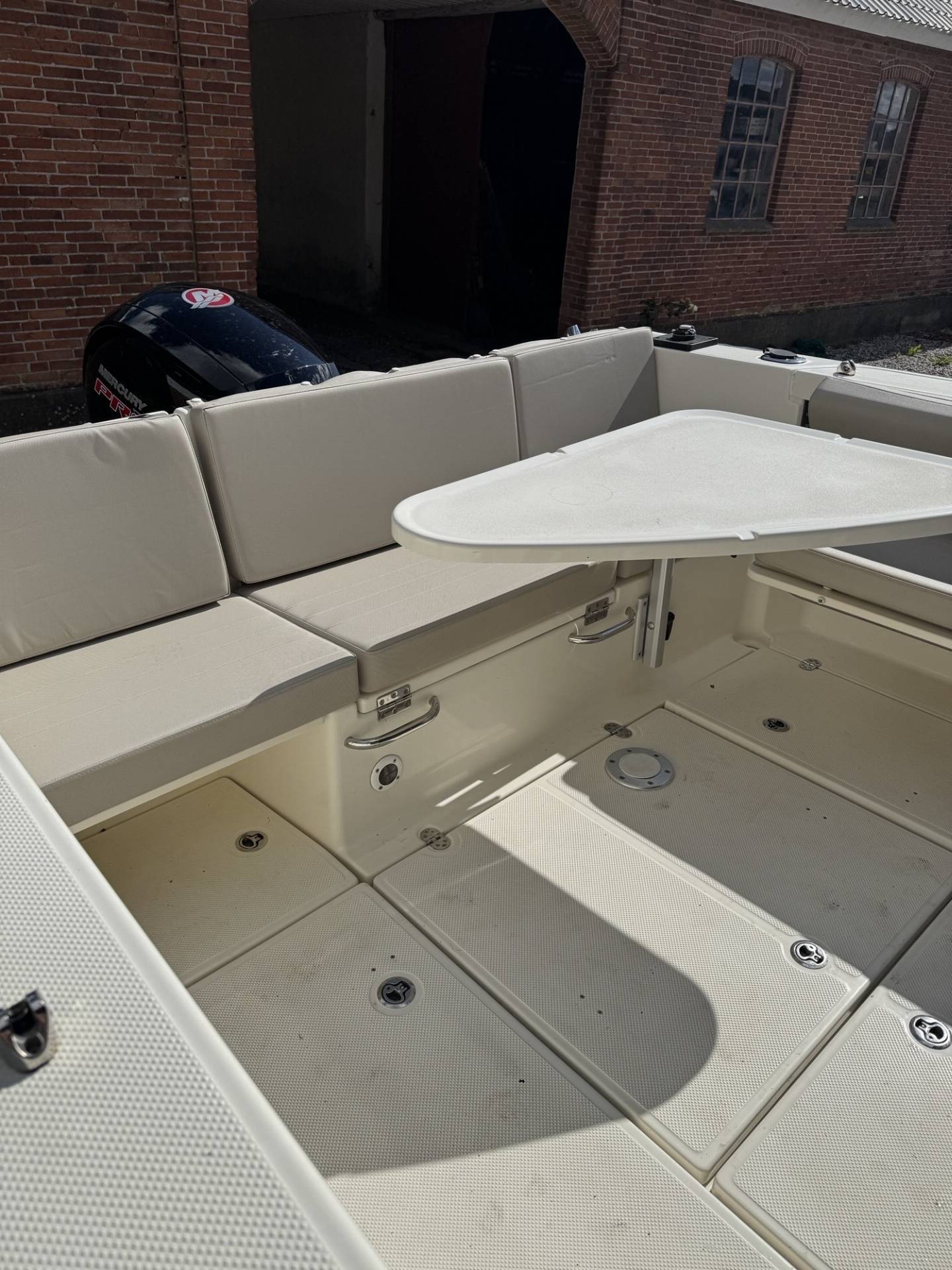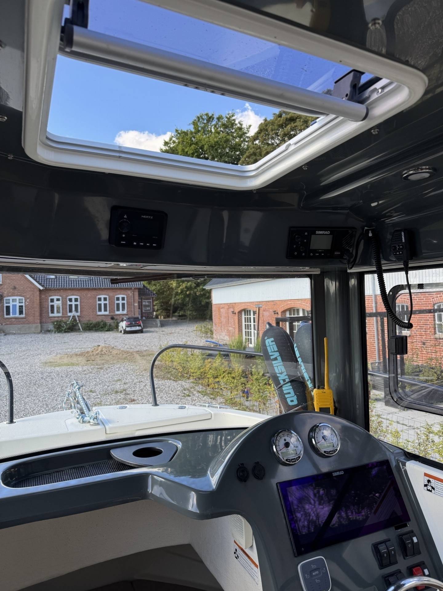 Komforten er i top med komplet agterkaleche, tagluge, gardiner, to pilotsæder og en hyndepakke til køjepladsen i fronten, så båden også kan bruges til længere ture eller overnatning. Luksus musikpakke, VHF radio og Mercury instrumenter er integreret, så både underholdning, sikkerhed og styring er på højeste niveau.