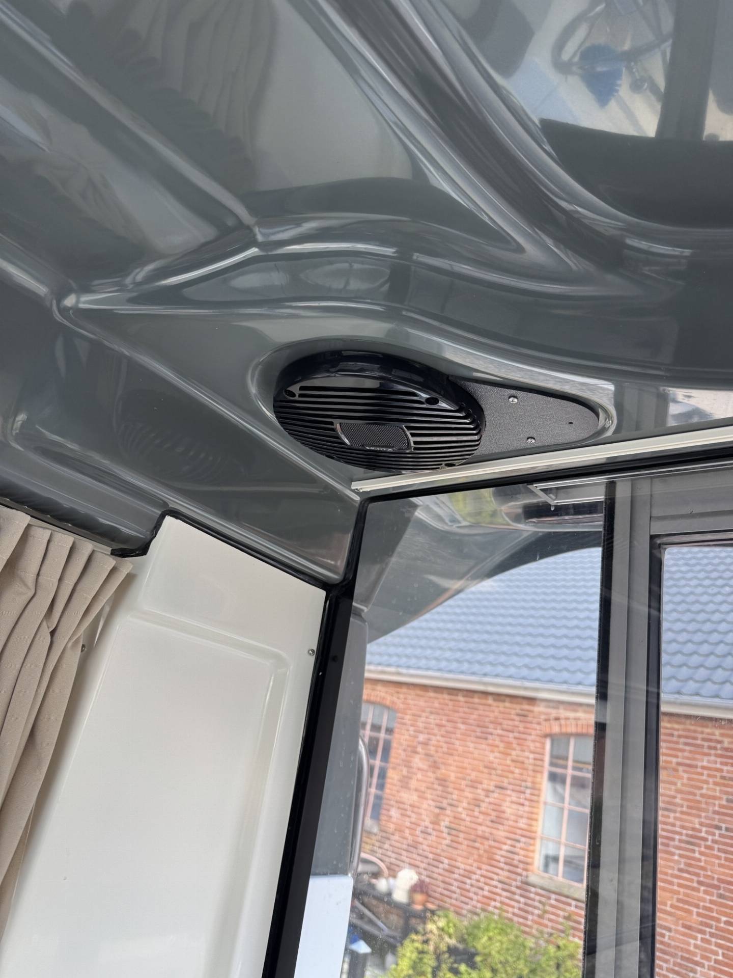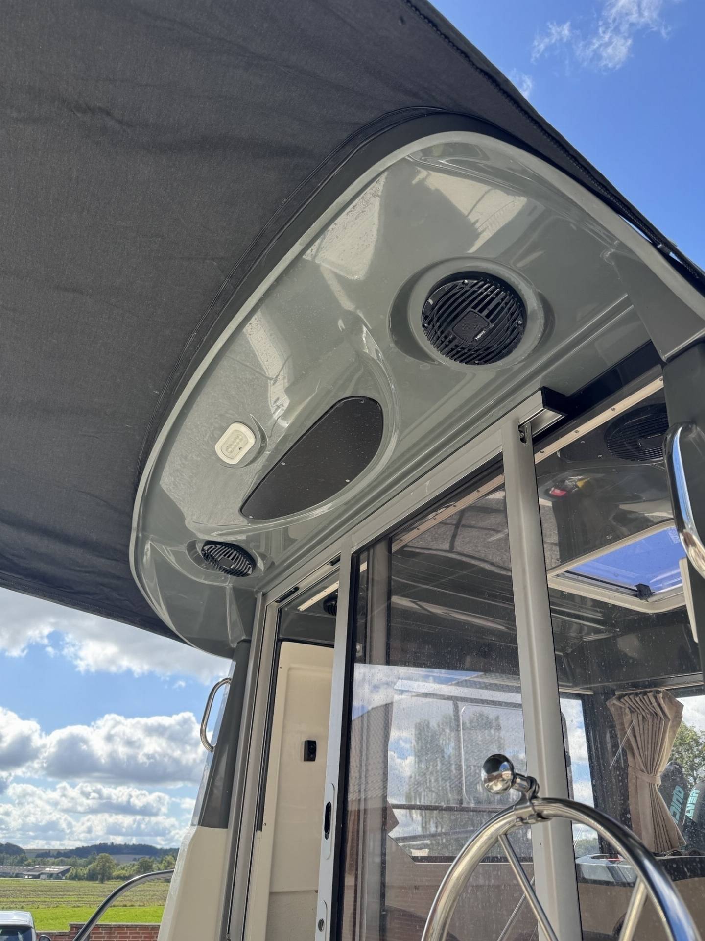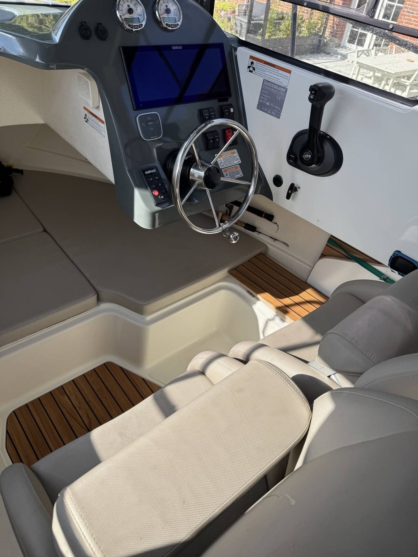 Komforten er i top med komplet agterkaleche, tagluge, gardiner, to pilotsæder og en hyndepakke til køjepladsen i fronten, så båden også kan bruges til længere ture eller overnatning. Luksus musikpakke, VHF radio og Mercury instrumenter er integreret, så både underholdning, sikkerhed og styring er på højeste niveau.