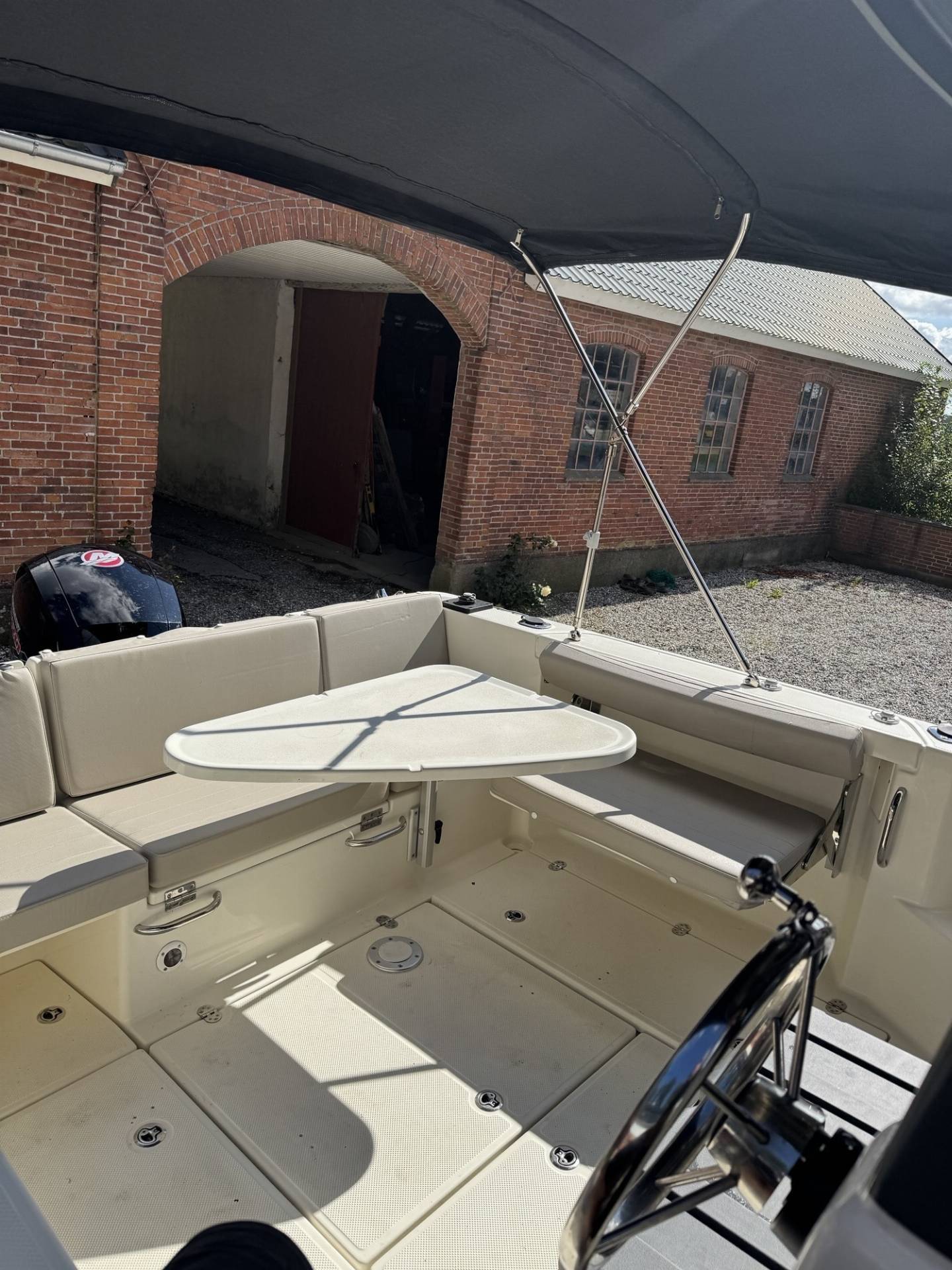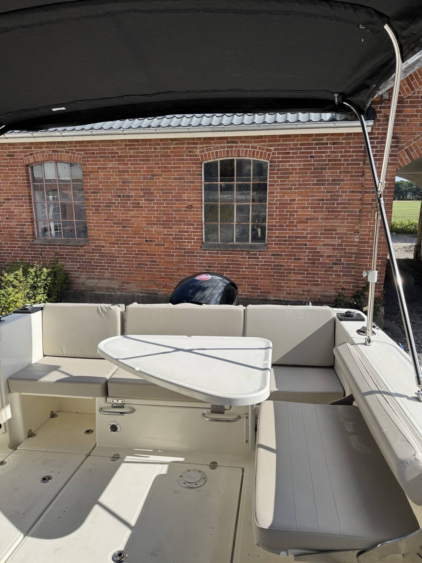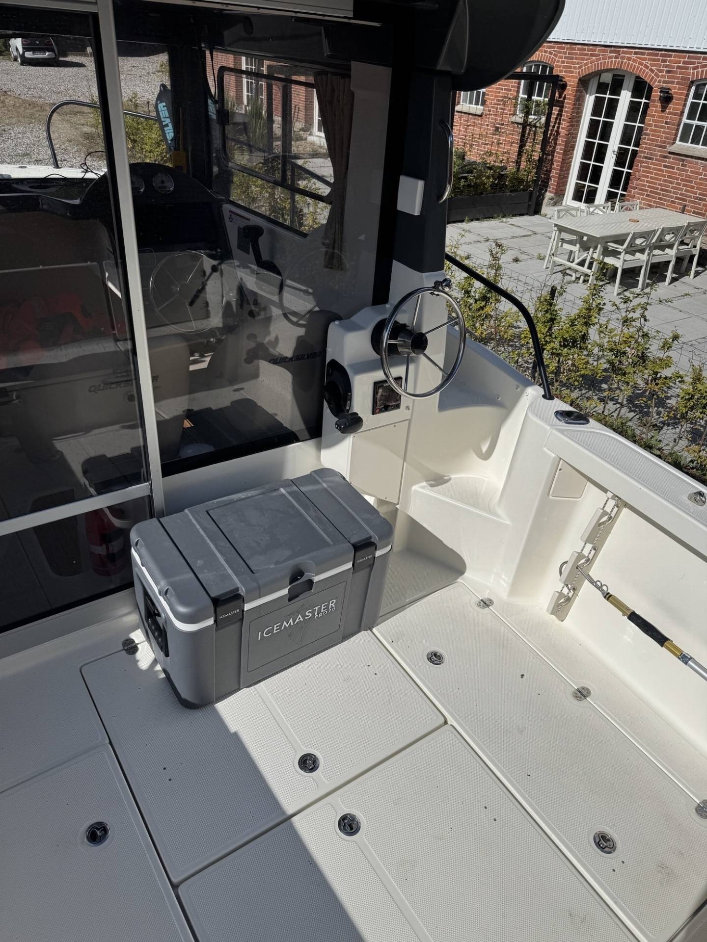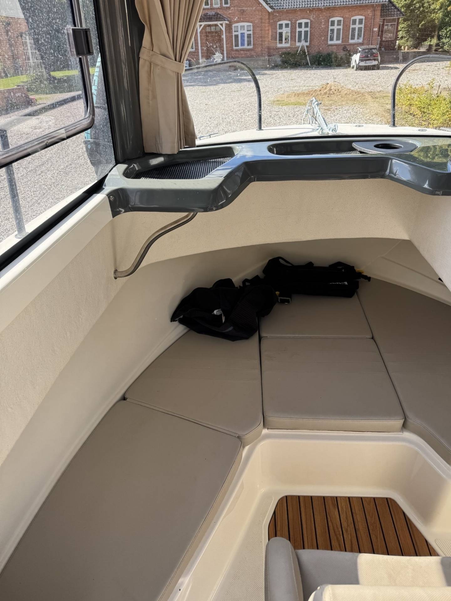 Til fiskeriet er båden indrettet med udvendig styring på 2. station, som giver dig perfekt kontrol under trolling eller ved havne- og havmanøvrer. Automatisk trimplan sikrer stabil sejlads selv under belastning, og den store agtercockpit er fleksibel med foldebænk, bord og komplet agterbænkesæt med hynder, der kan tages i brug, når fiskeriet er overstået. Badeplatformene gør håndtering af fiskegrej og ophaling af fangst mere praktisk.
