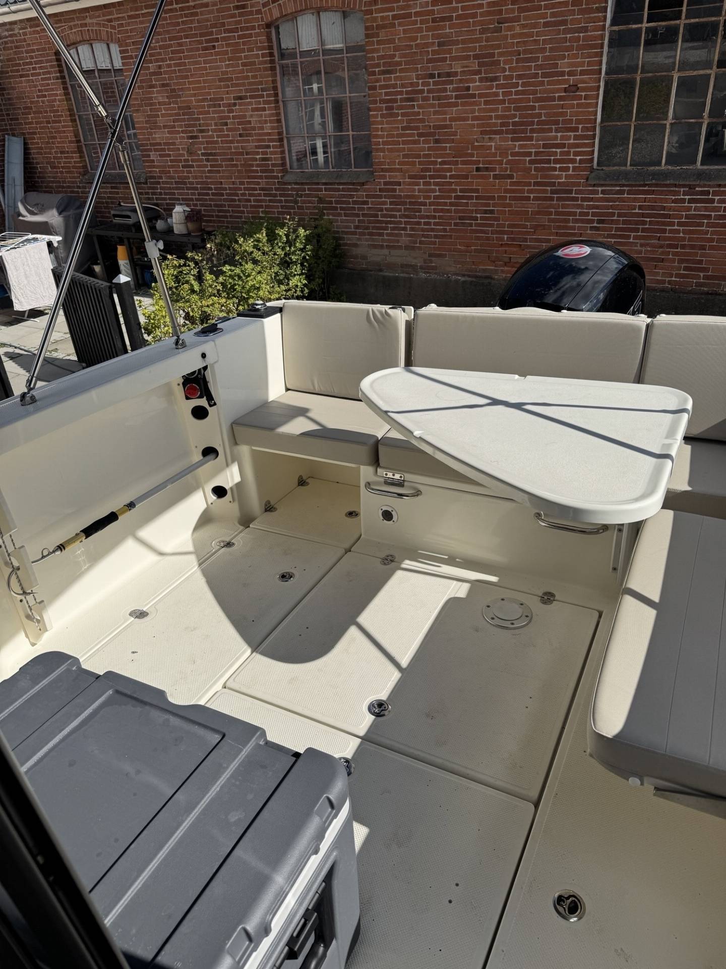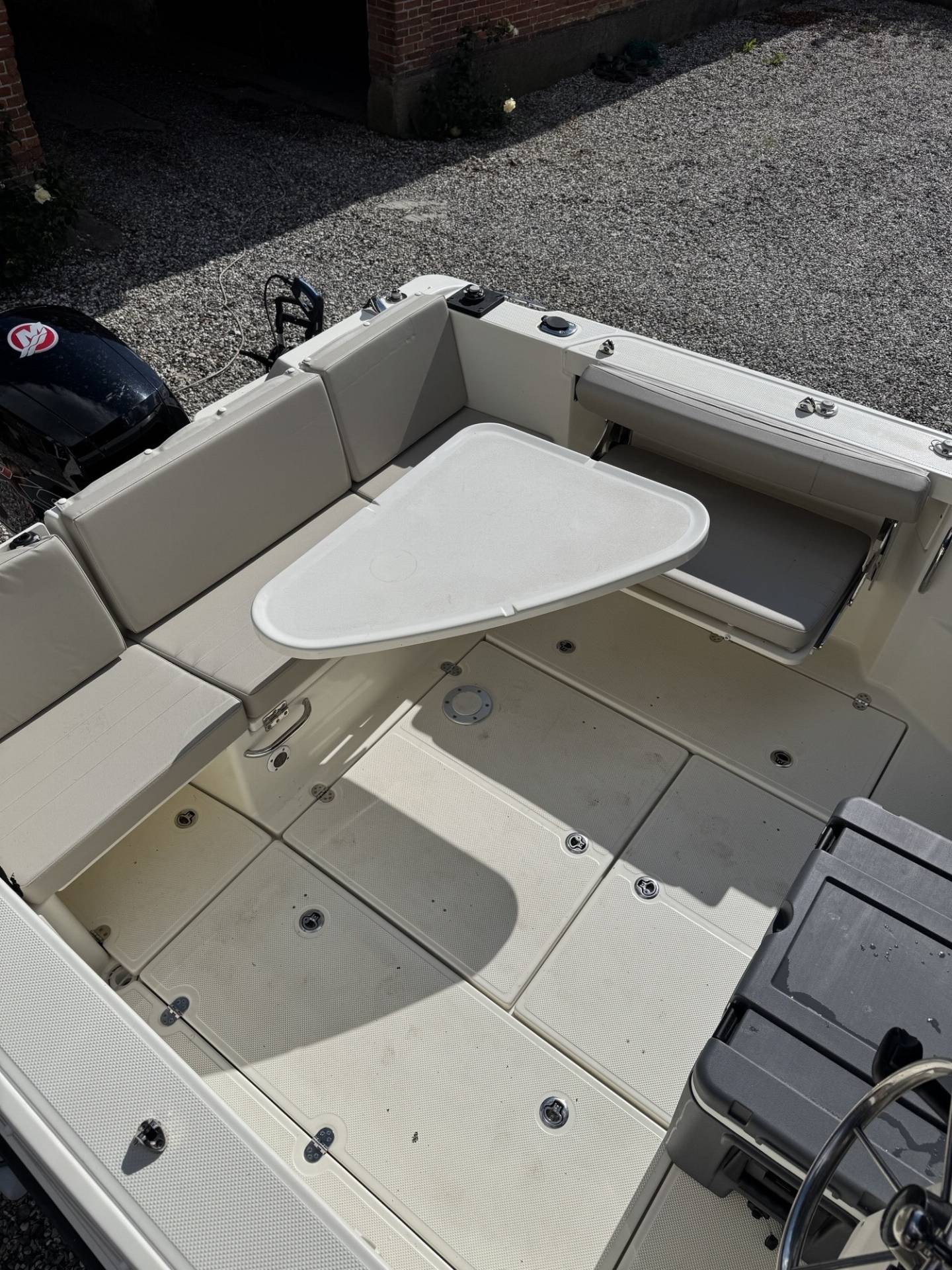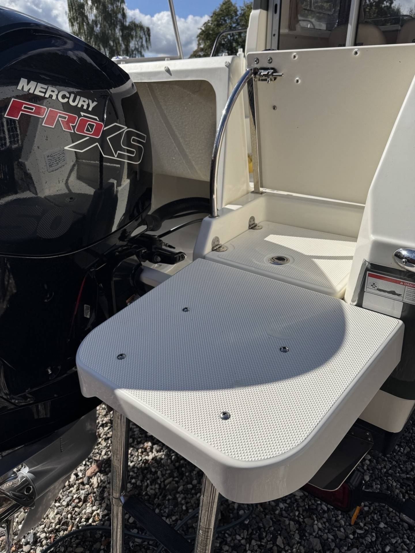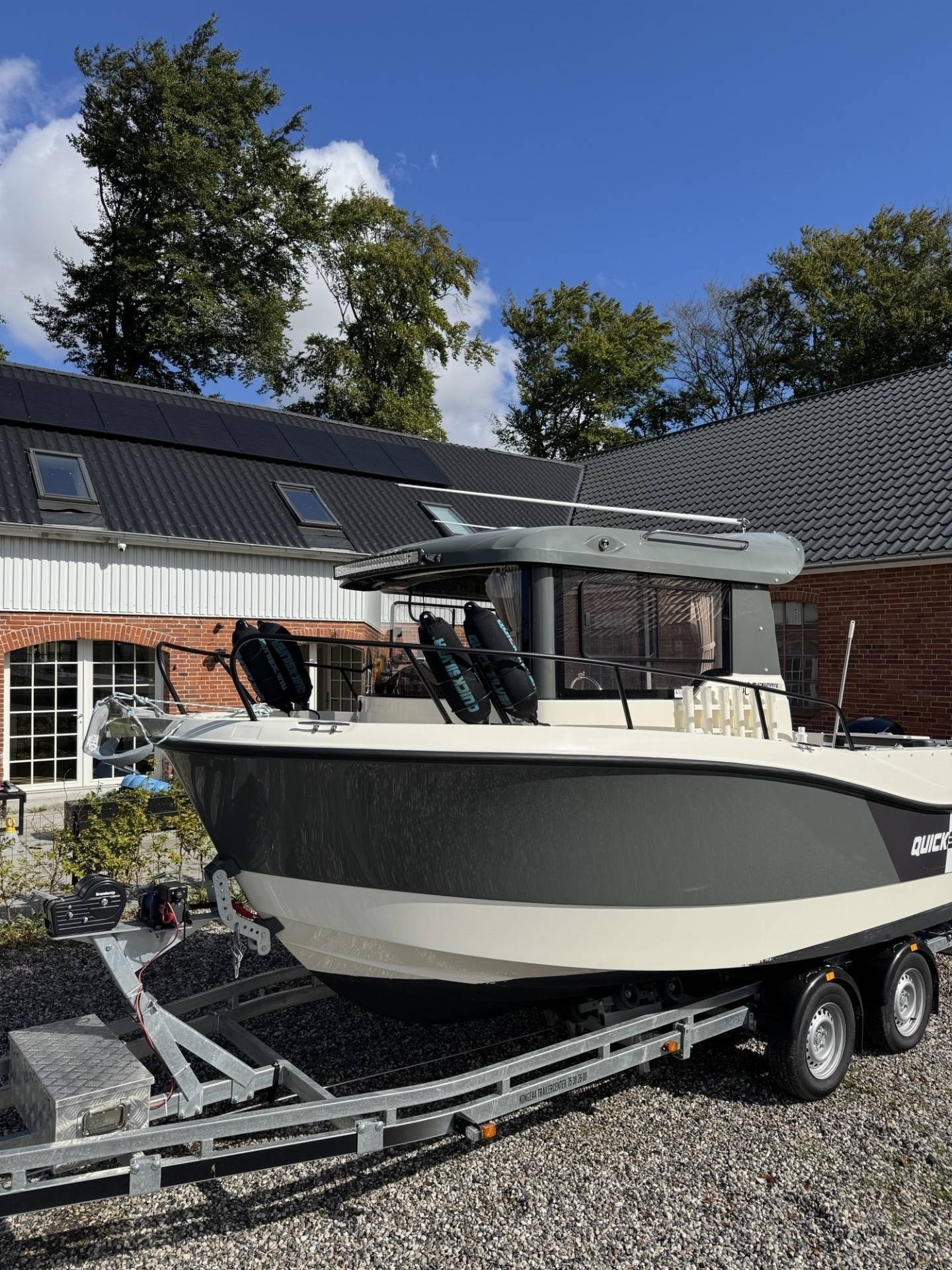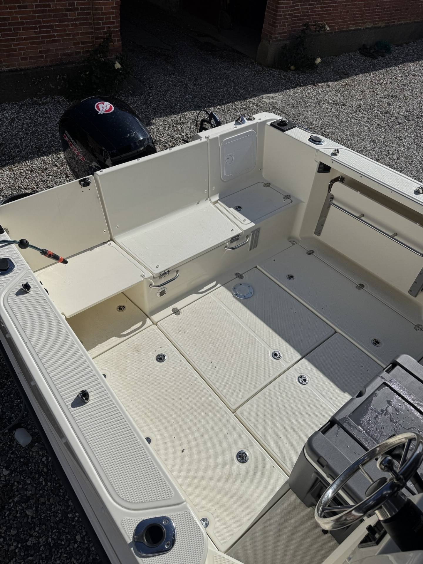 Til fiskeriet er båden indrettet med udvendig styring på 2. station, som giver dig perfekt kontrol under trolling eller ved havne- og havmanøvrer. Automatisk trimplan sikrer stabil sejlads selv under belastning, og den store agtercockpit er fleksibel med foldebænk, bord og komplet agterbænkesæt med hynder, der kan tages i brug, når fiskeriet er overstået. Badeplatformene gør håndtering af fiskegrej og ophaling af fangst mere praktisk.