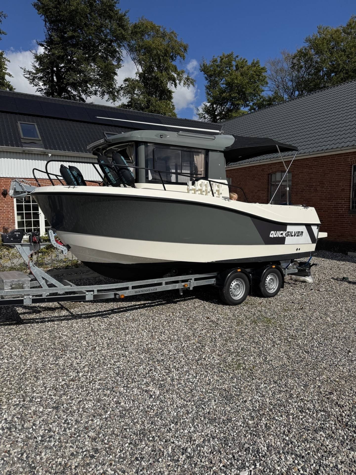 Med sit indfarvede grå skrog, bundmaling og omfattende udstyrspakke fremstår denne Quicksilver 605 Pilothouse som et særdeles attraktivt valg for den seriøse lystfisker, der samtidig vil have en moderne og velindrettet båd med alt, hvad man kan ønske sig.