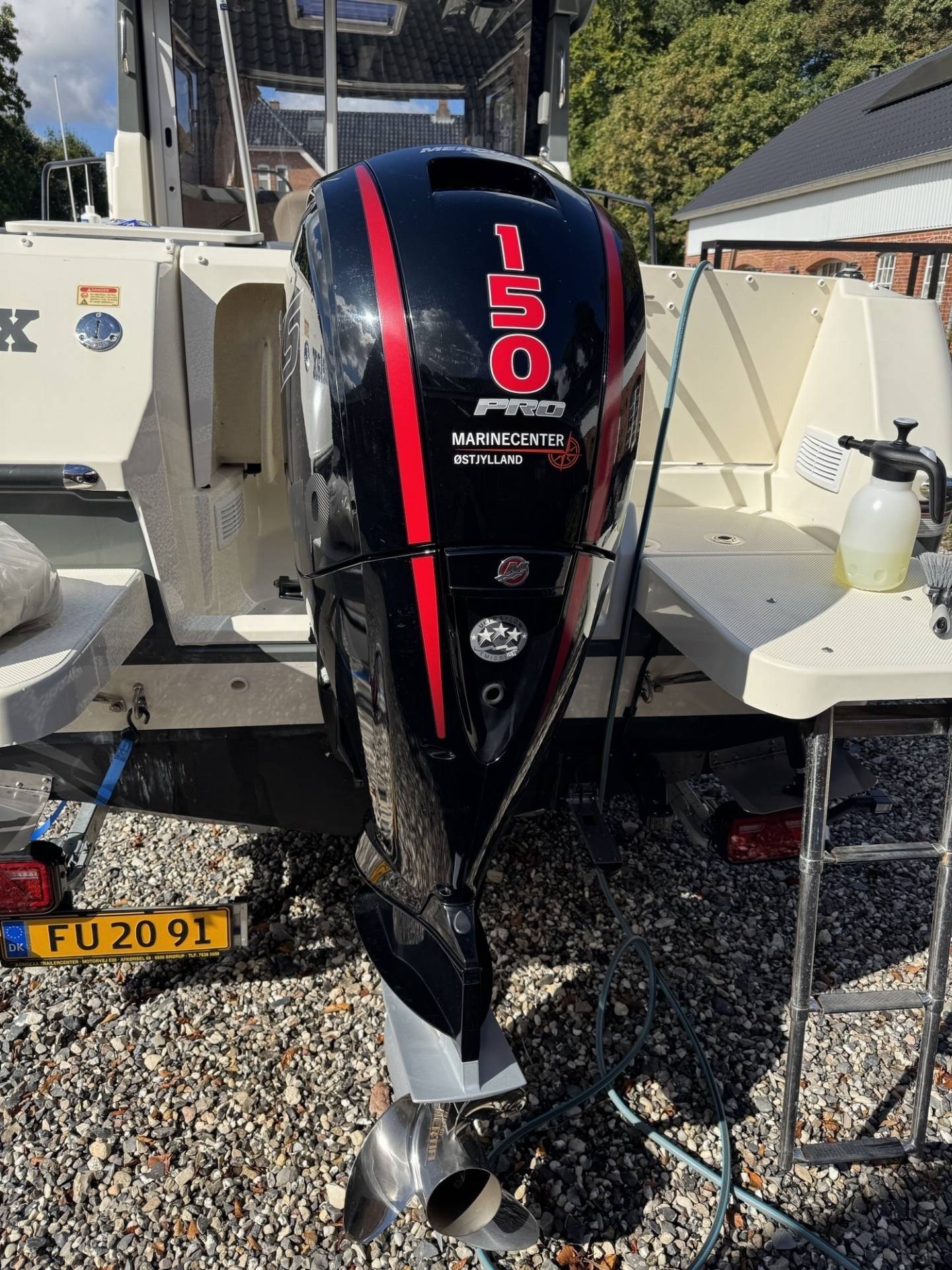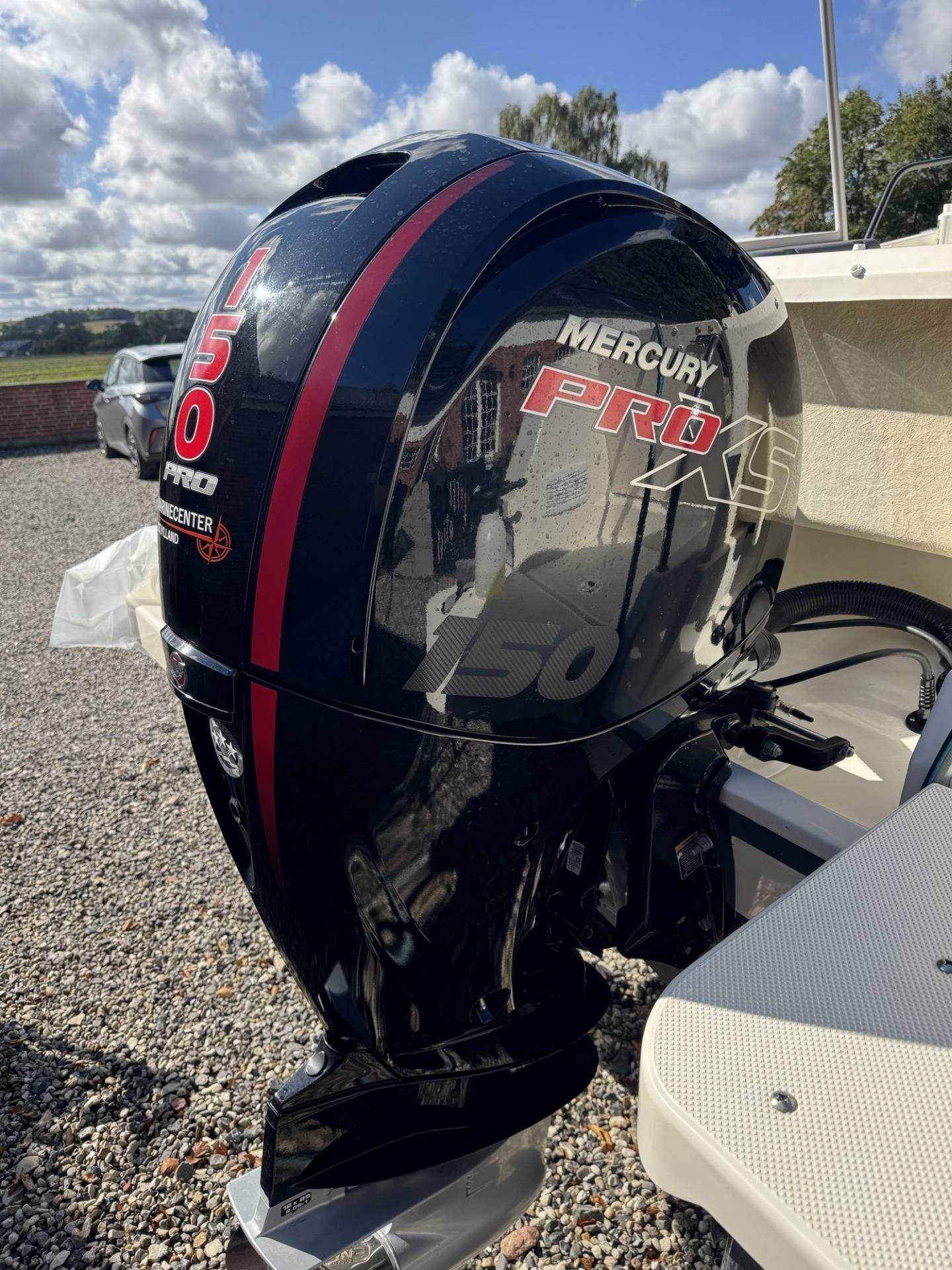 Båden er udstyret med Mercury 150 HK XS PRO, en kraftfuld og responsiv motor, som leverer høj fart, sikker acceleration og masser af overskud – uanset om du skal hurtigt ud til fiskepladserne, eller du vil nyde en rolig tur langs kysten. Sammen med Garmin 92UHD navigation og ekkolod får du præcise kort og krystalklare undervandsbilleder, der gør det let at finde og følge fiskene.