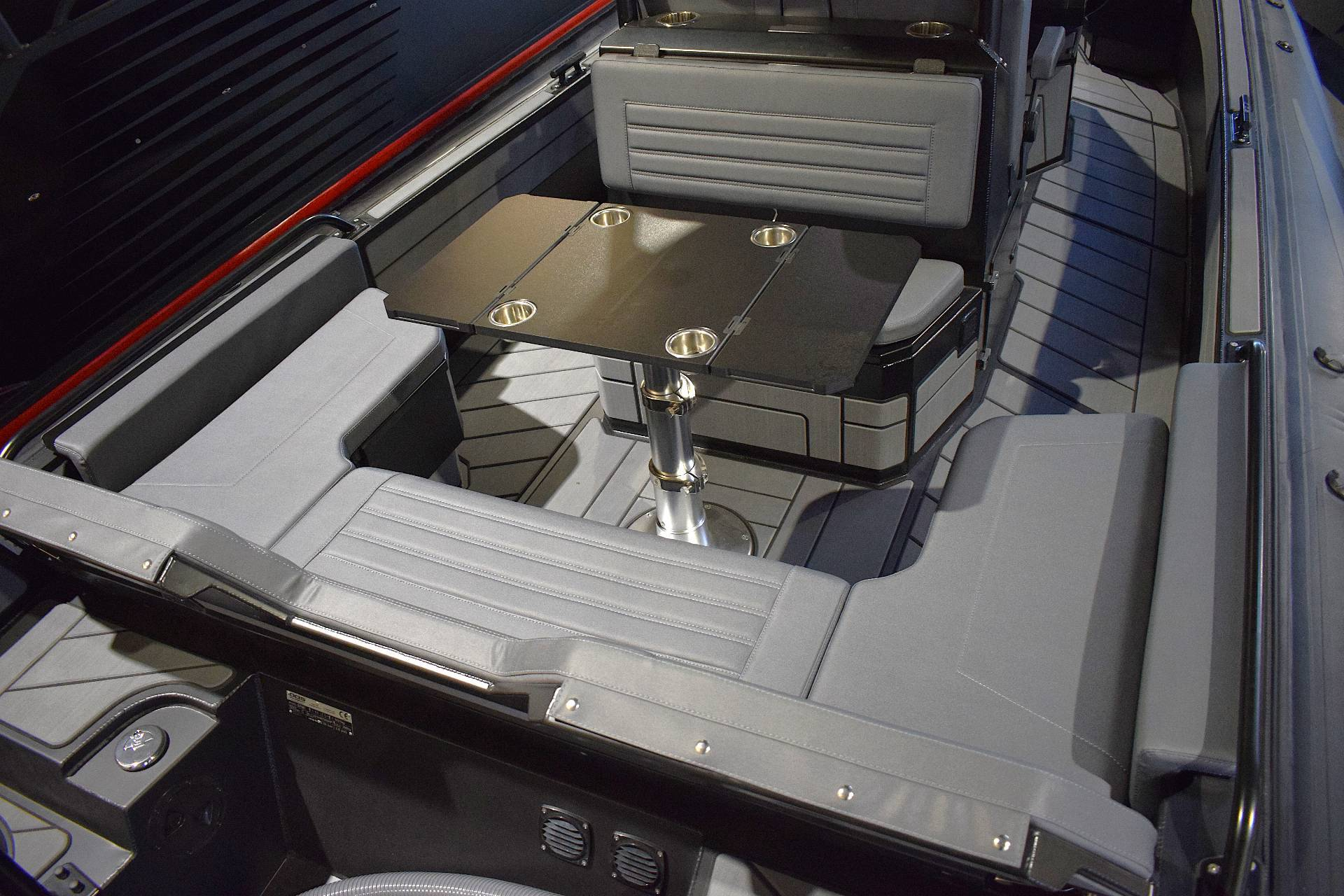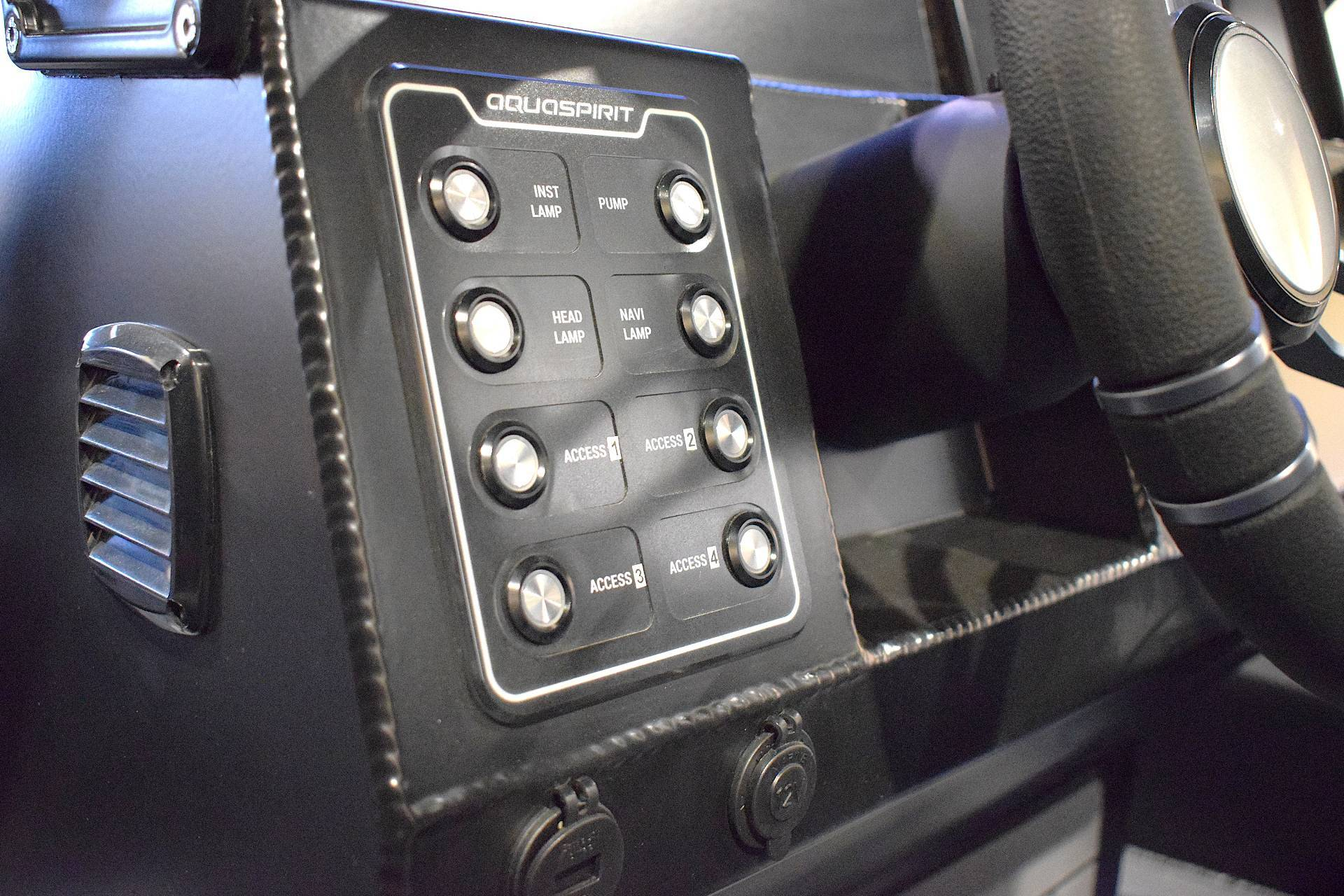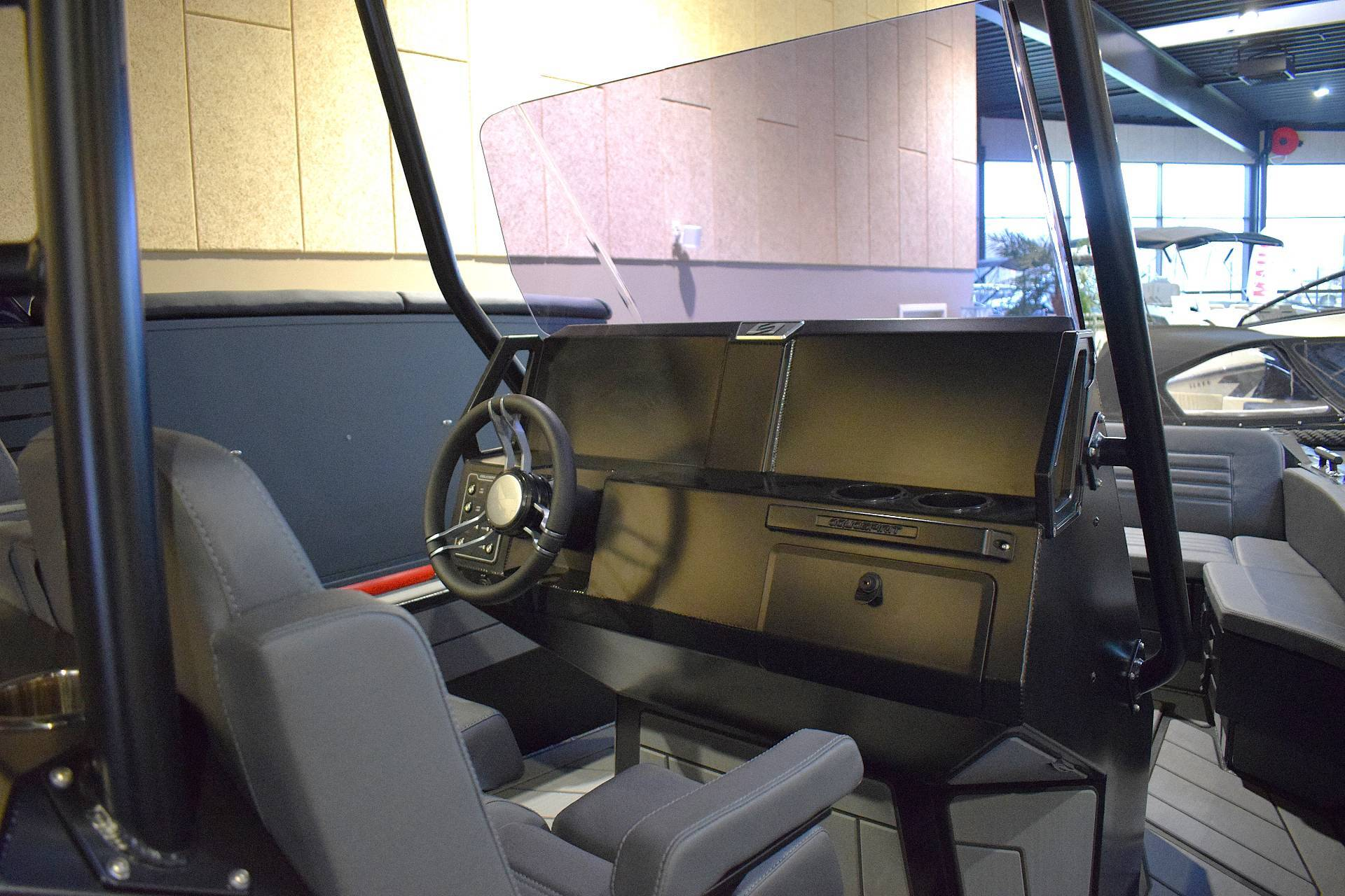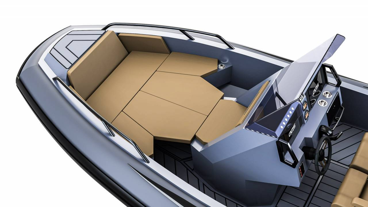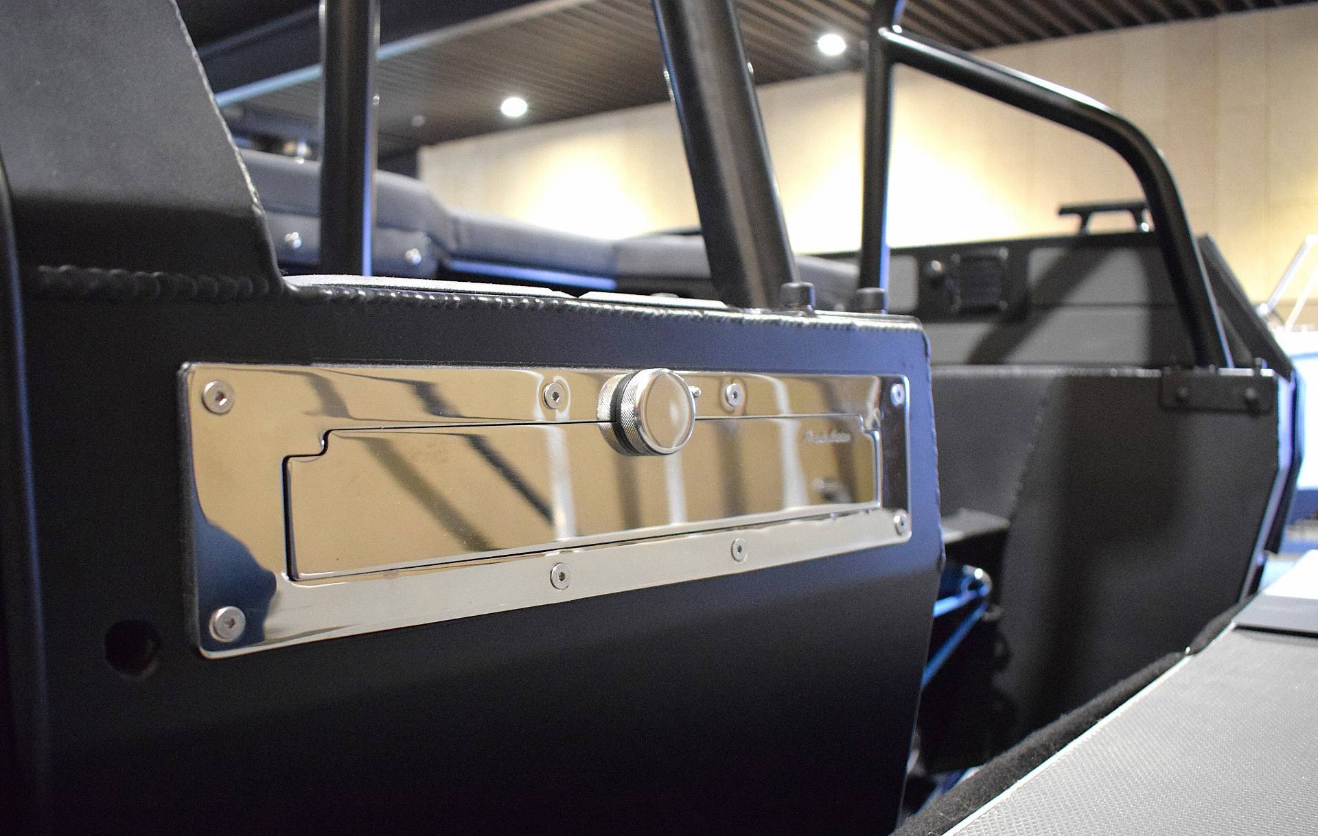 Langs fribordet fra front til bag, finder du mange fortøjningsmuligheder og er du typen der gerne vil have lidt skygge når du er på vandet, kan båden også bestilles med et flot og maskulint A-frame stativ, der kan holde en bimini - her har du også mulighed for at få monteret udryknings -og arbejdslys. Bestiller du båden med et musikanlæg, har du mulighed for at hænge højtalere kabinetter op i stillet - frækt men stilfuldt.