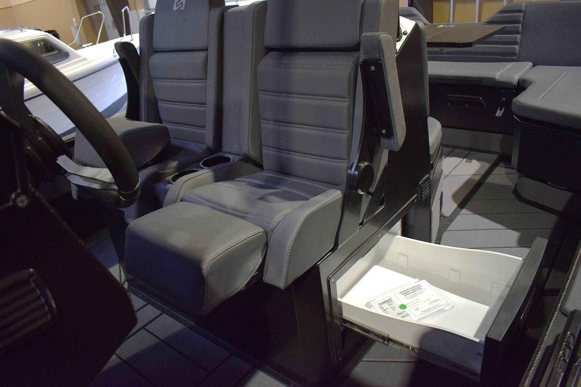I den forreste del af konsollet kan du åbne en låge ind til et lille rum, som kan anvendes til f.eks toilet rum - der er simpelthen mulighed for at stille et toilet, sætte sig og lukke lågen, således du kan sidde helt privat - der er desuden lys i rummet.