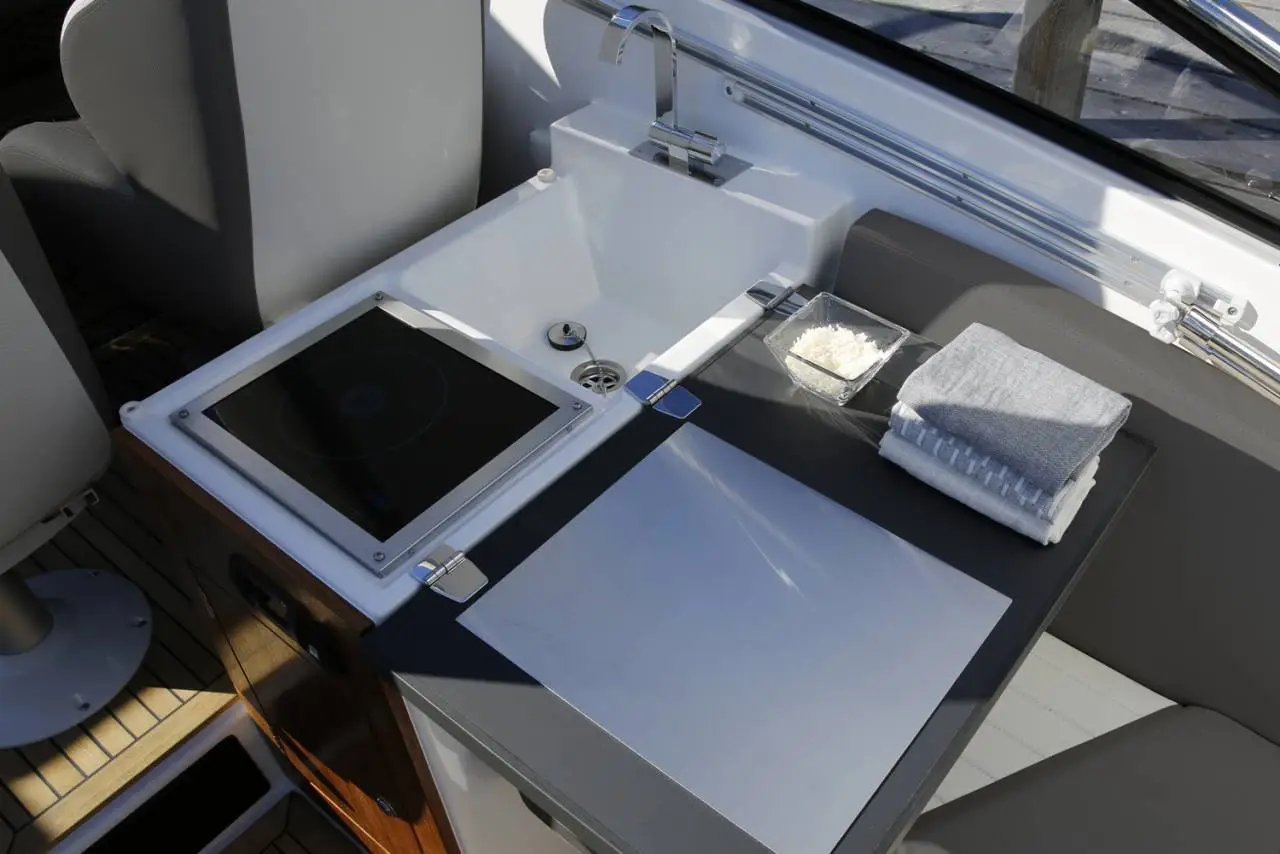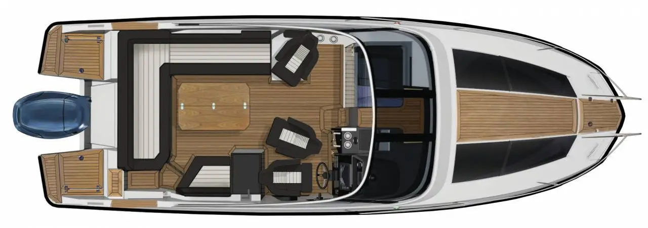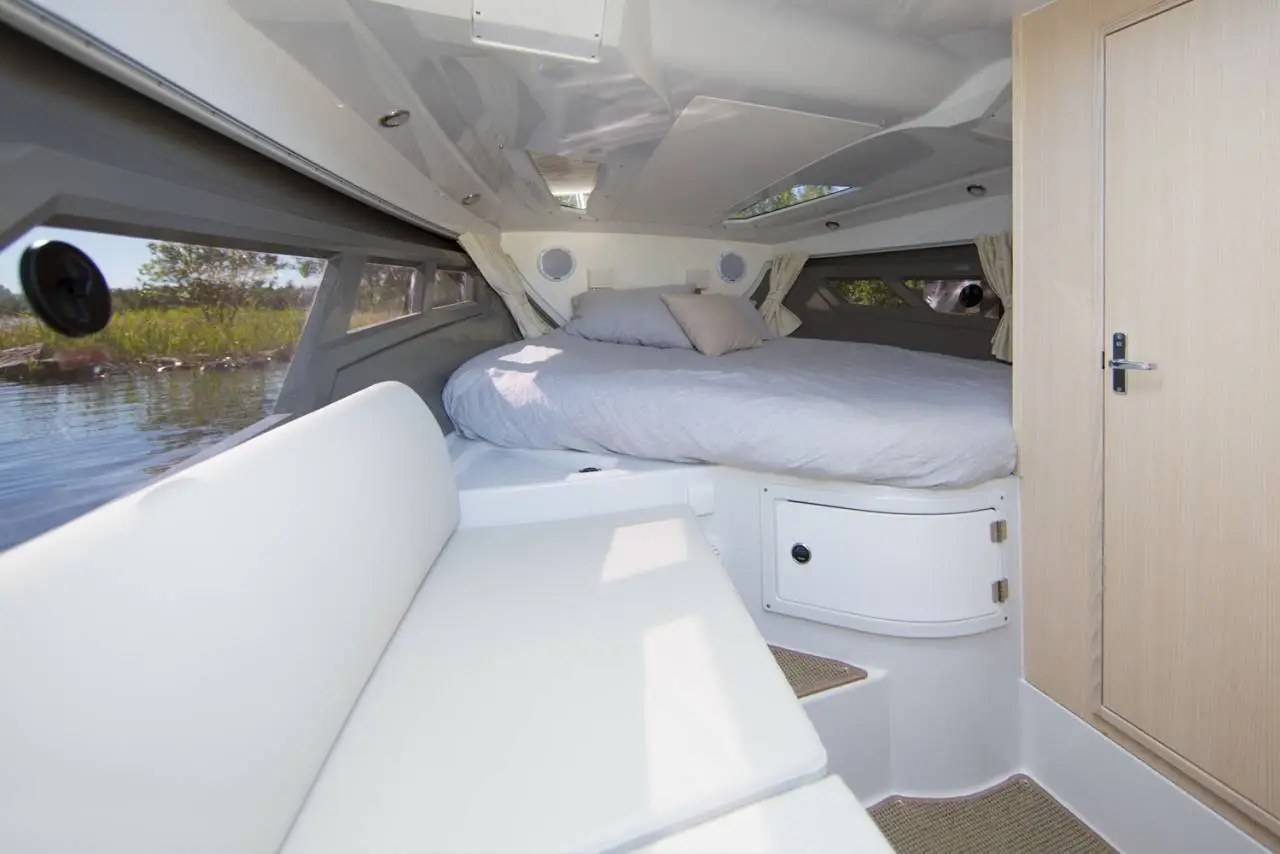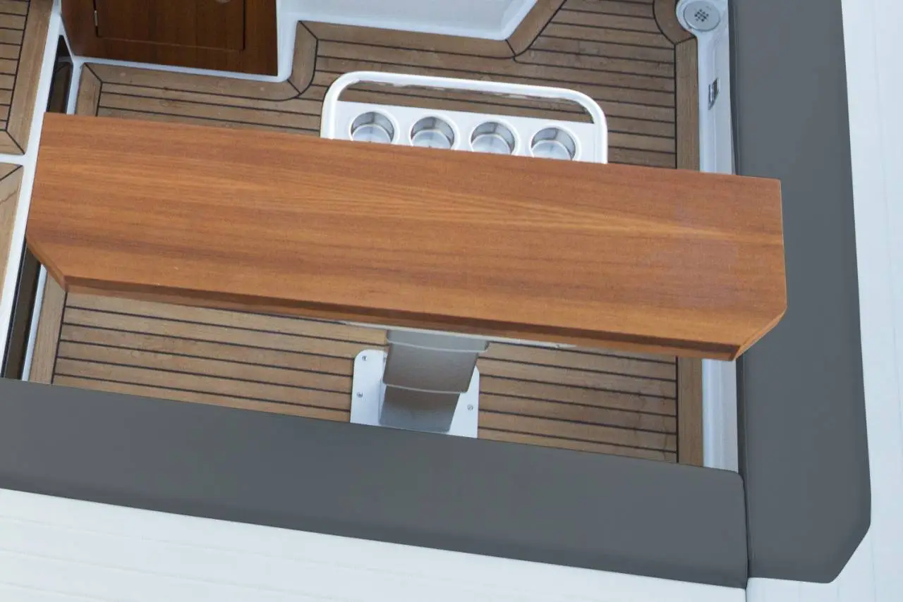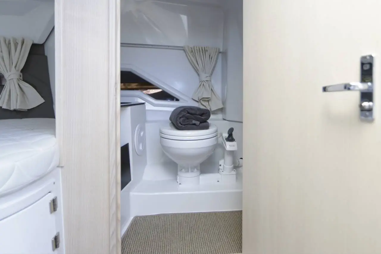 Af og til behøver man ikke at gå på kompromis. Din båd kan være både sporty og komfortabel på samme tid! Derfor valgte man ikke at udelade noget, da T-seriens stolthed– T8 blev skabt. Denne luksuriøse båd kombinerer unikke sejlegenskaber, de ærefulde Smart Design-løsninger, som er Finnmasters signatur. Her er der ganske enkelt bare brugt de bedste materialer og ikke gået på kompromis med noget. Vi har samlet årtiers know-how til at skabe en kompromisløs for dem, som ønsker det! Denne prisbelønnede og alsidige day-cruiser gør, at du kan gå fra at have en middag med hele familien til hurtig og nemt at forvandle spisepladsen til en af havnens lækreste soldæk. Når solen så går ned, kan hele familien tilbringe natten i den store kahyt, som er udstyret med en separat toiletenhed.