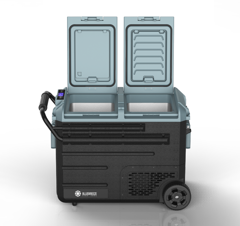 Som noget helt nyt tilbyder BlueBreeze en model med indbygget lithium batteri - dette batteri gør at du ikke behøves at tilkoble den til strøm i eksempelvis bilen/båden/campingvognen, men blot kan bruge strømme fra det indbyggede batteri. Holdbarheden på dette afhænger naturligvis af temperaturen udenfor og hvor meget/lidt du ønsker de forskellige rum nedkølet. Hvis du ønsker det så har du mulighed for at købe et ekstra batteri som du kan have ladet op på forhånd, så du helt kan undvære at tilkoble enheden til strøm. Disse batterier lades op når de installeres i køleboksen. Hvis du eksempelvis ønsker at holde en temperatur på ca. 5 grader i køleboksen, så holder batteriet typisk 8-10 timer. Ønsker du at begge rum skal fryse ned til 18 grader, så holder det ca. 4-5 timer. Det tager ca. 7-8 timer at lade et batteri op fra det er helt afladet.